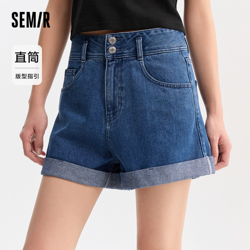 森马牛仔裤女高腰短裤显腿长夏季遮肉显瘦卷边A字裤百搭直筒裤