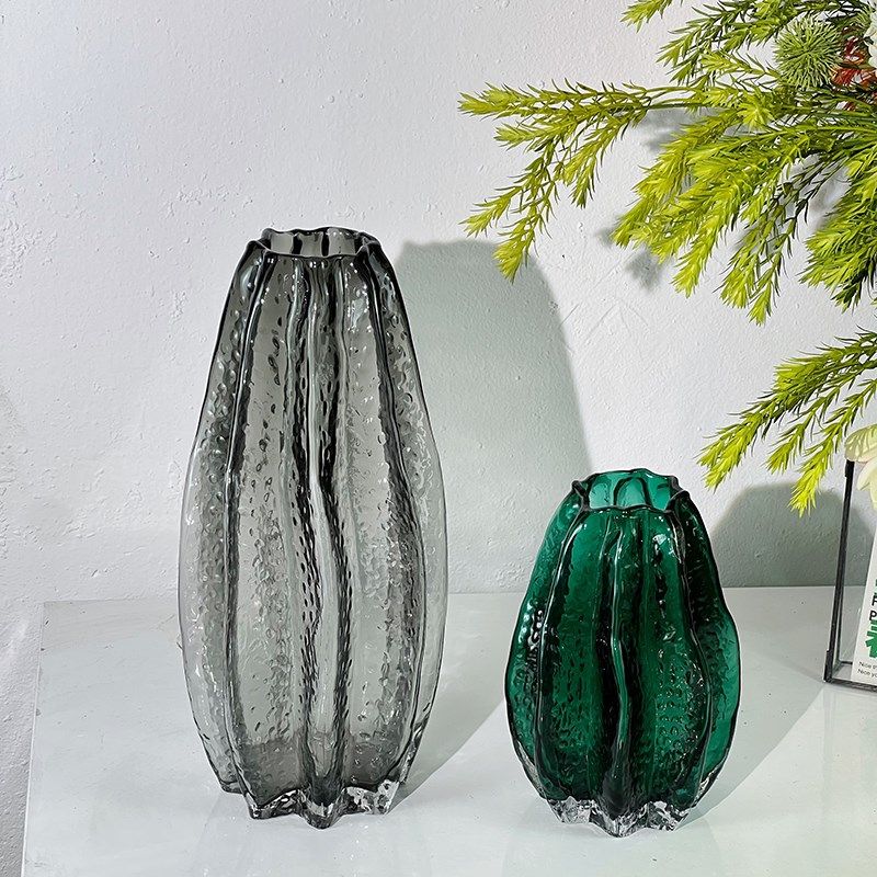 不规则高端艺术玻璃透明水养花瓶摆件客厅插花电视柜.杨桃装饰品