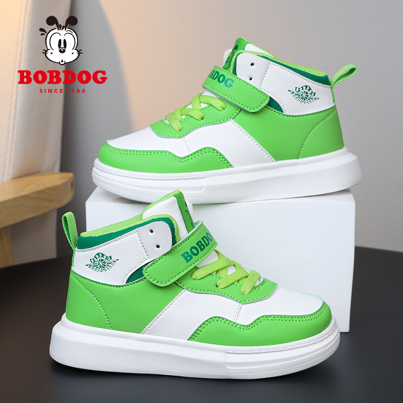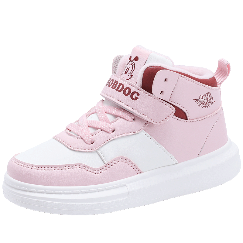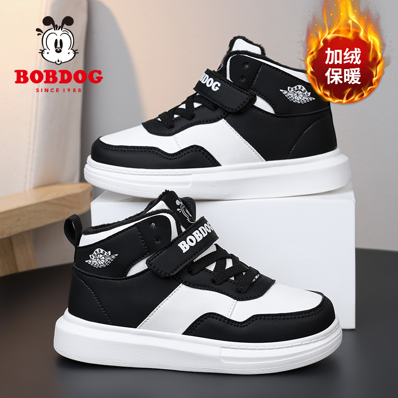 巴布豆女童高帮板鞋2025新款冬季加绒二棉保暖皮面防水儿童运动鞋