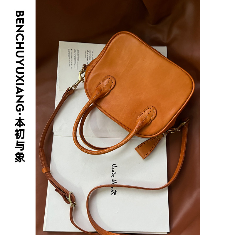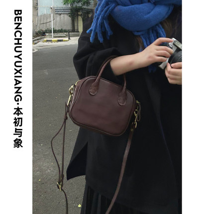 本初与象女包小众复古通勤手提包真皮斜跨小方包单肩包文艺休闲