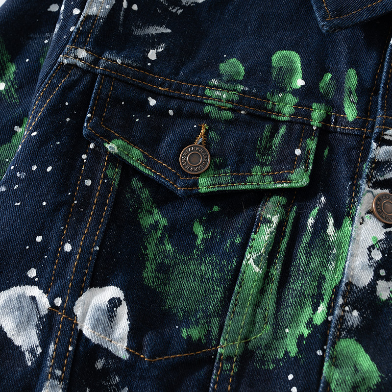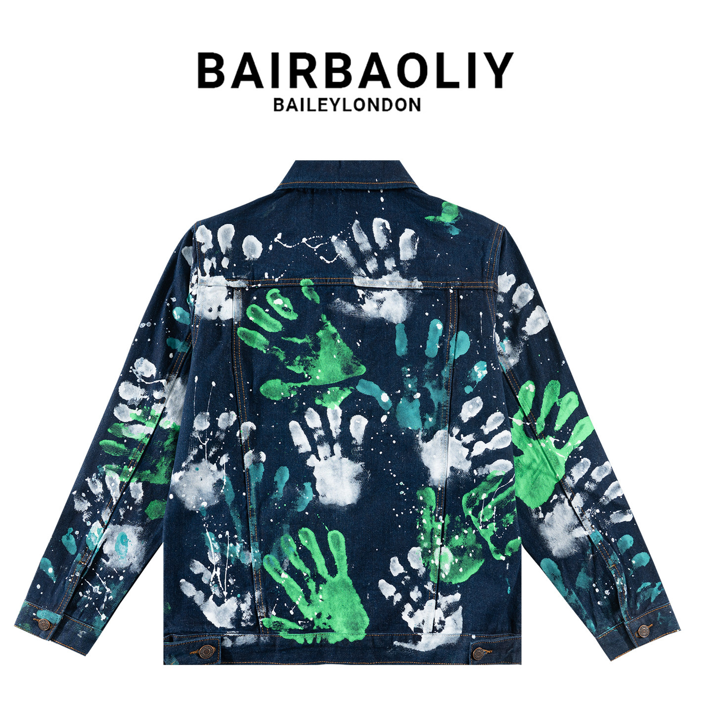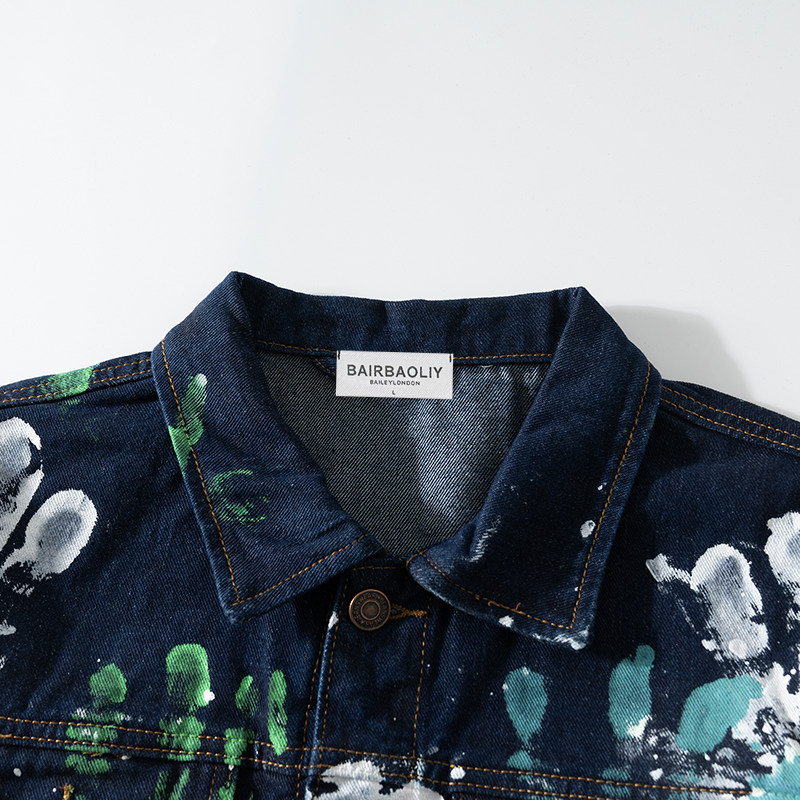 BAIRBAOLIY重工艺设计感手绘涂鸦手掌泼墨夹克潮牌炸街牛仔男外套
