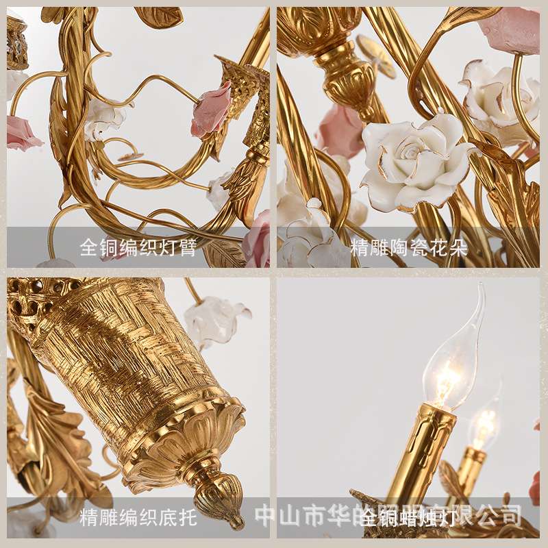 法式全铜陶瓷吊灯欧式别墅奢华复古客厅卧室灯具女孩公主房灯饰
