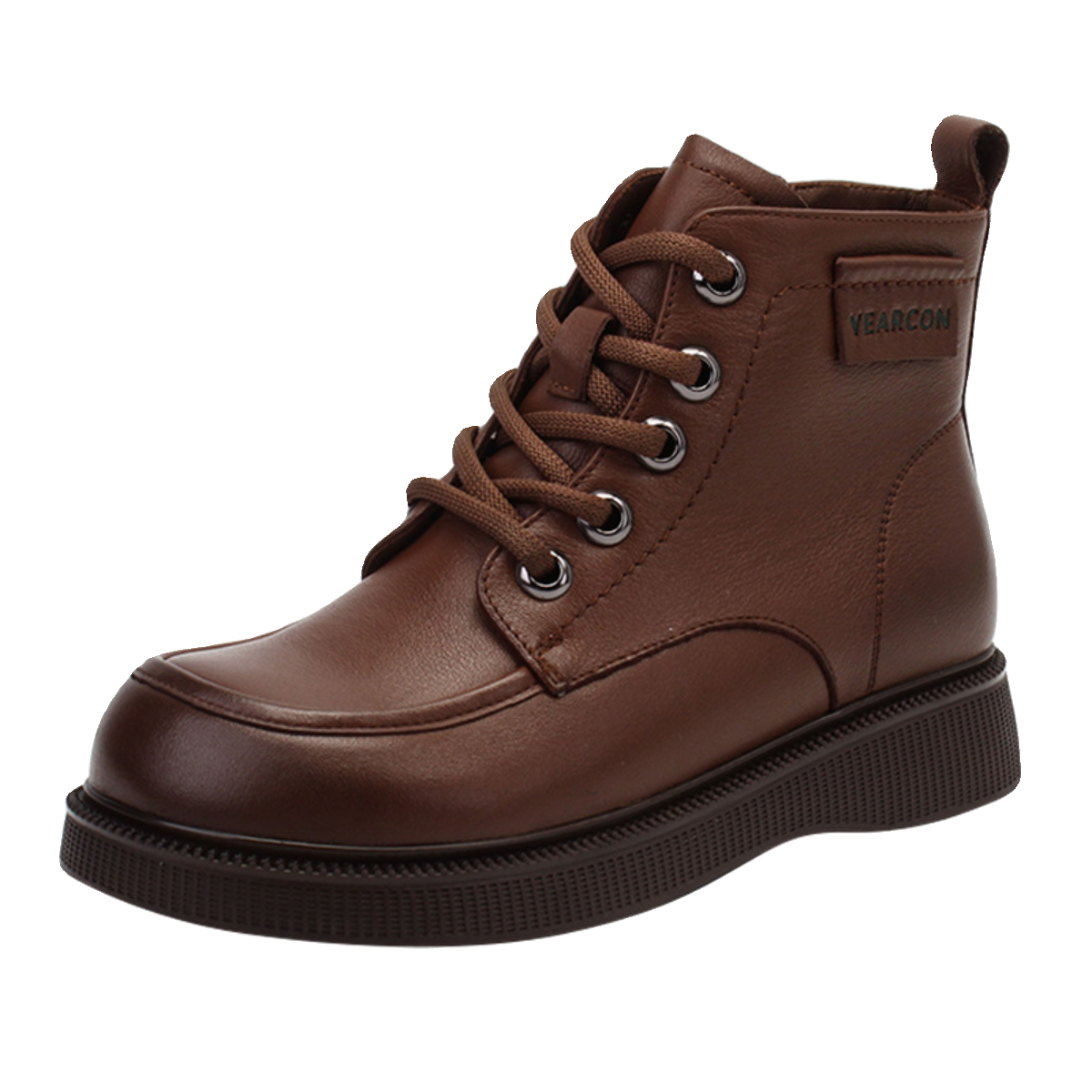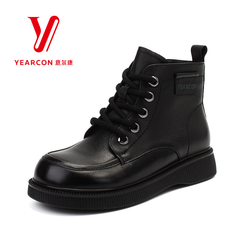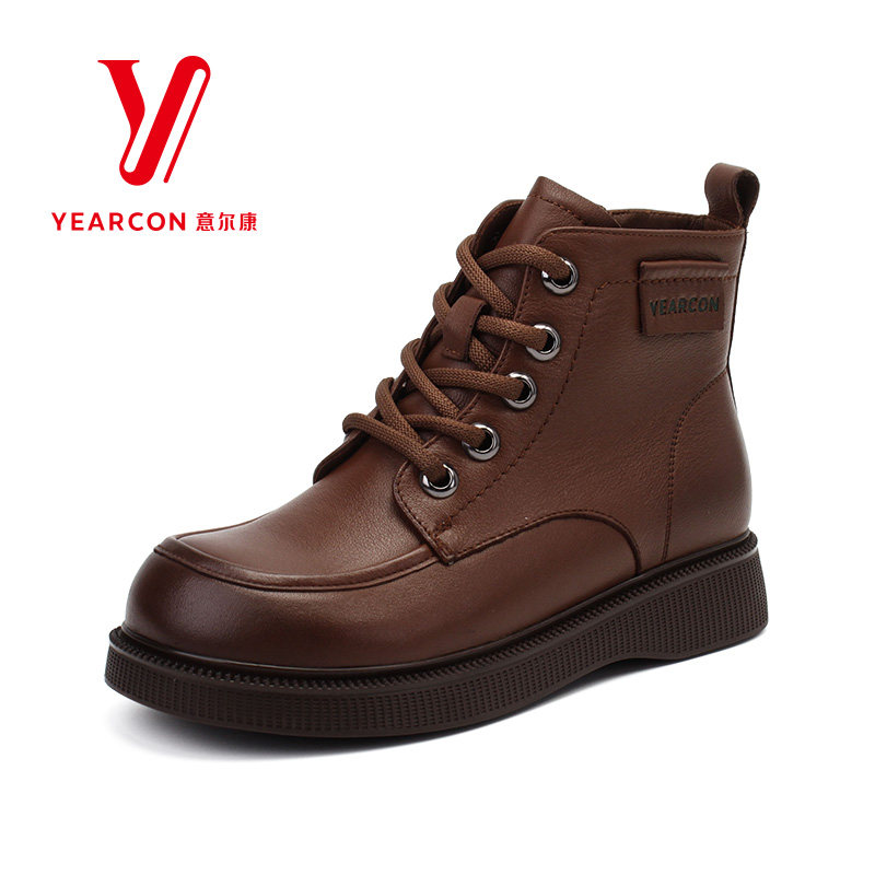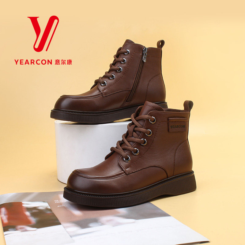 意尔康冬季马丁靴女2025新款真皮女短靴软底舒适短筒女靴加绒棉鞋