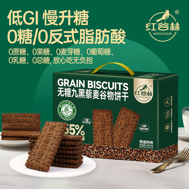 红谷林低GI无糖9红9黑藜麦谷物饼干1088g礼盒送长辈亲友健康礼盒