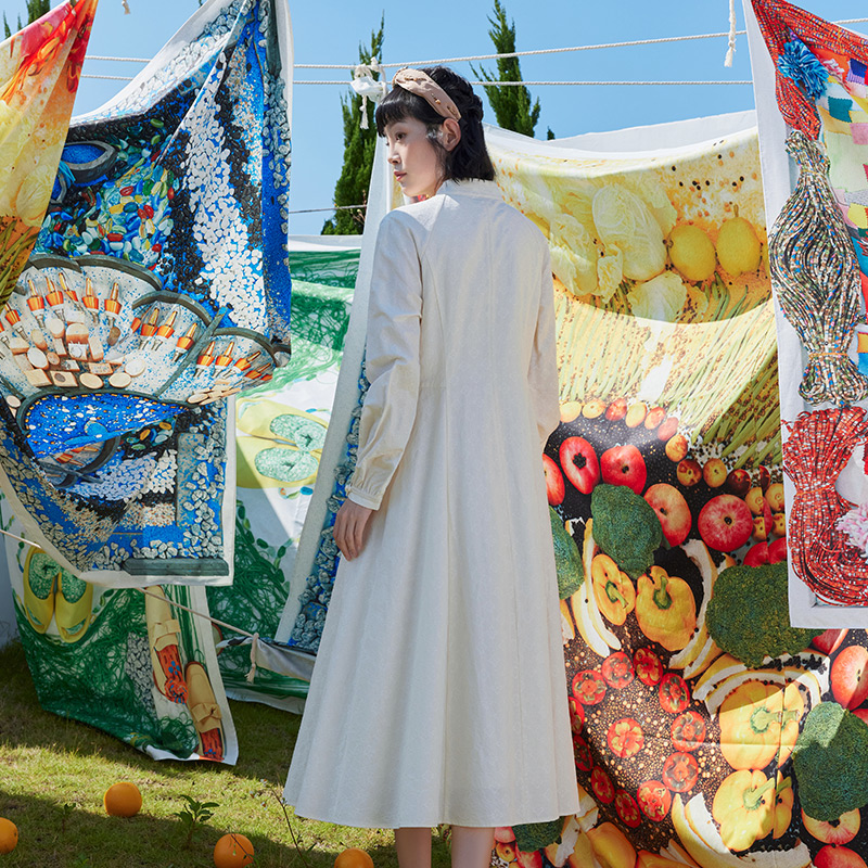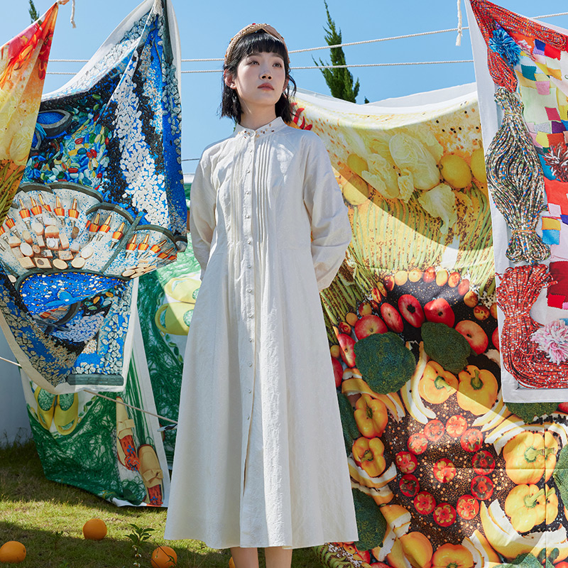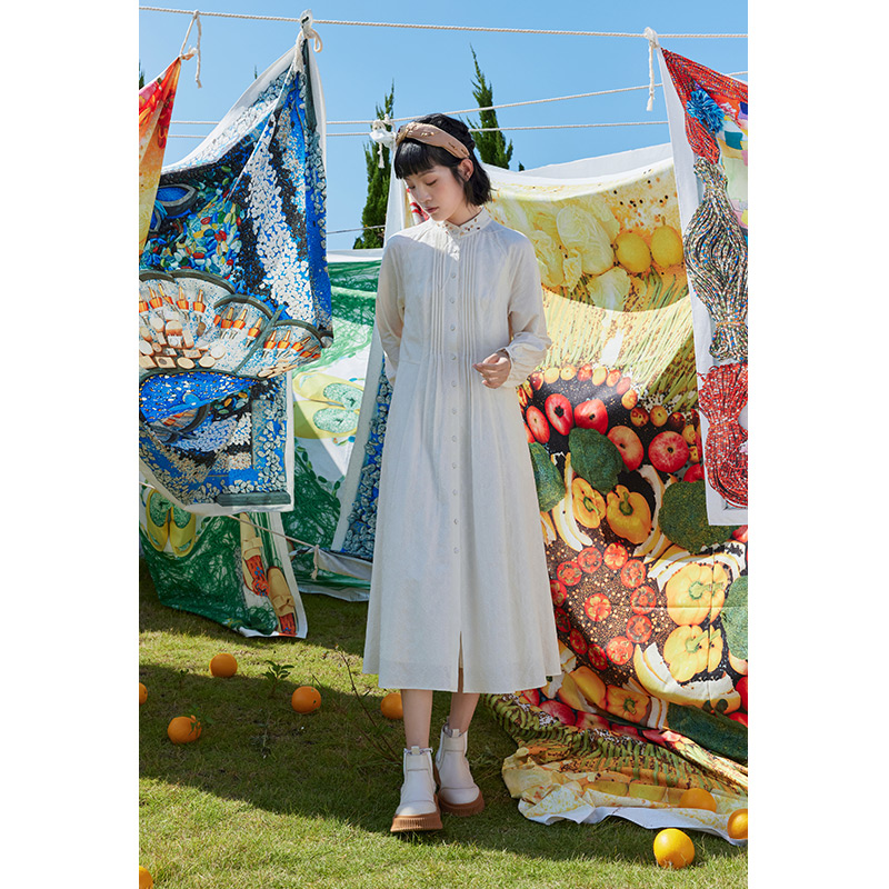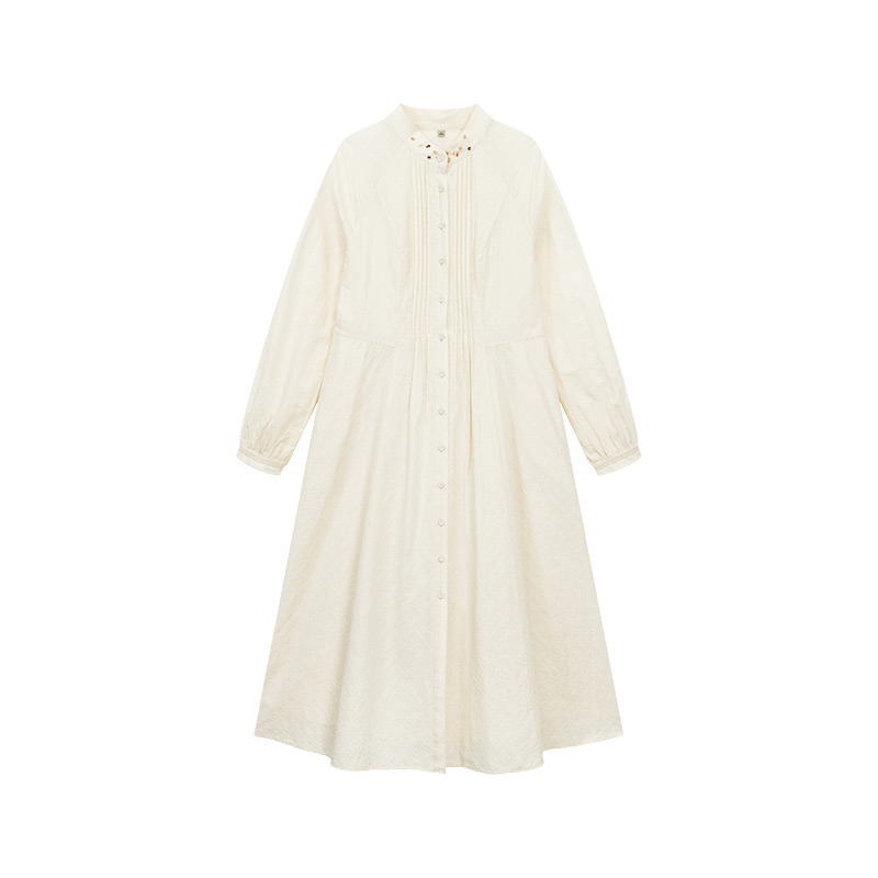 一城画一秋季简约时尚收腰显瘦气质文艺立领长款连衣裙14113A034