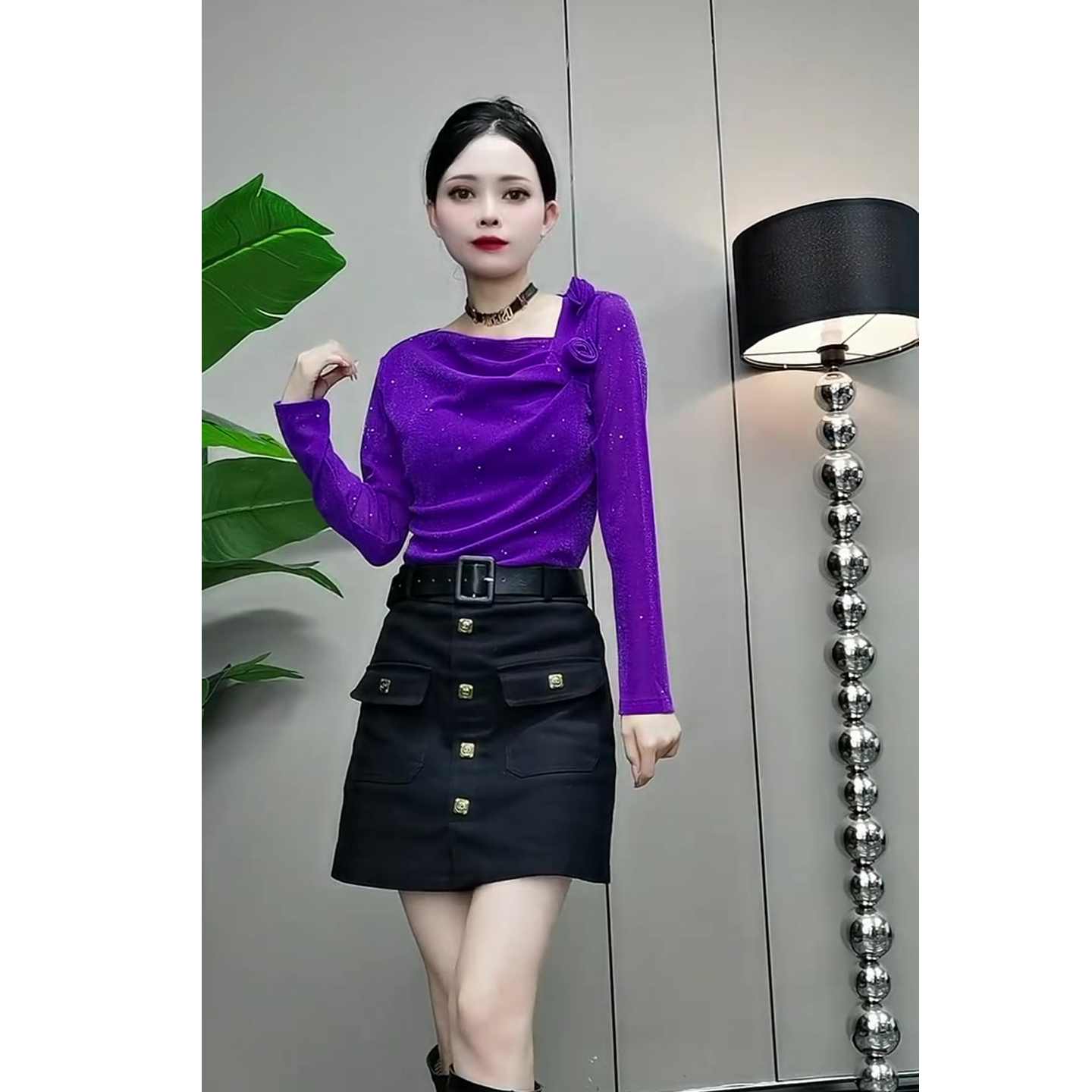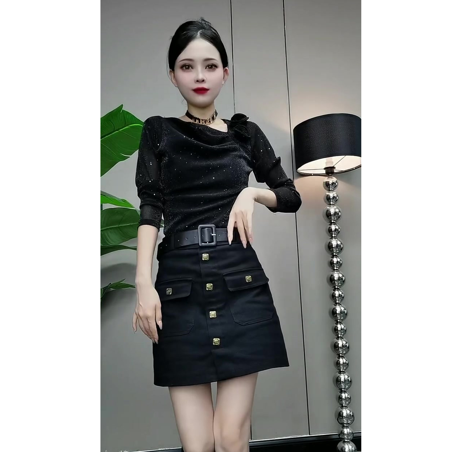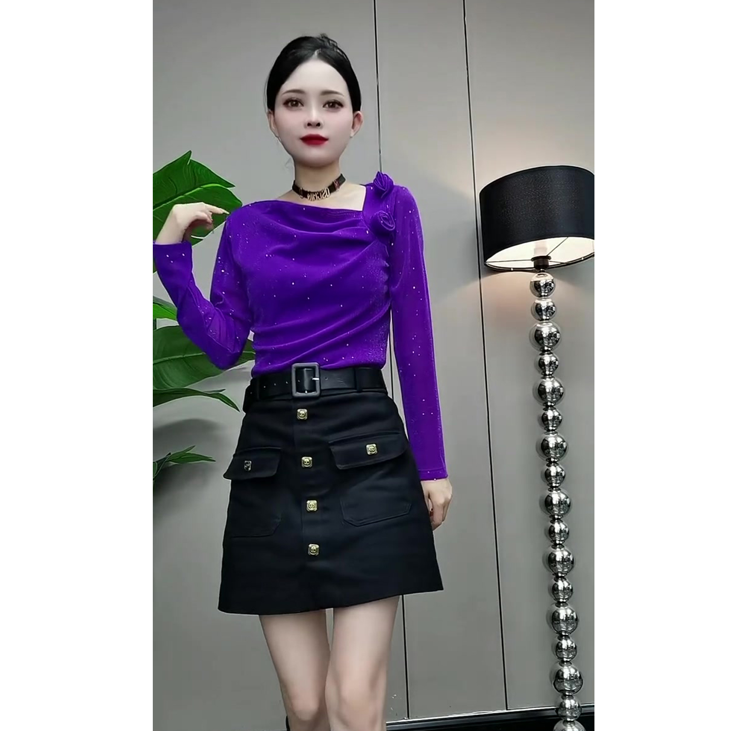 立体花亮闪闪打底衫女秋季新款遮肉显瘦时髦欧货百搭小衫网红上衣
