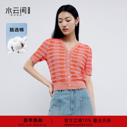 水云间撞色毛针织开衫短袖女装v领短款上衣修身显瘦2025夏季新款