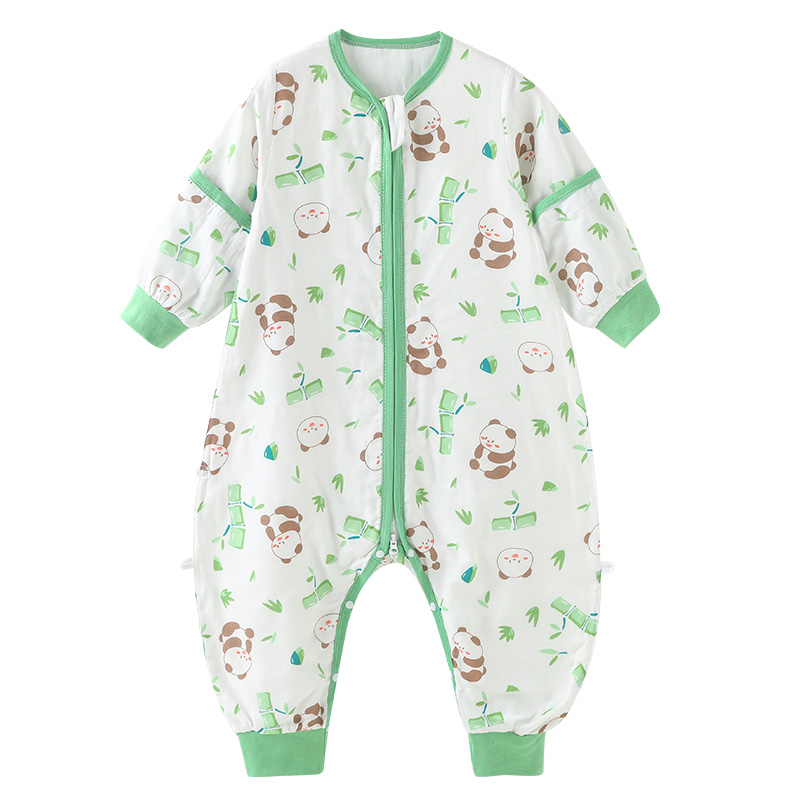 竹棉纱布宝宝睡袋新生婴儿t春秋薄款大童防踢被子四季通用夏天分