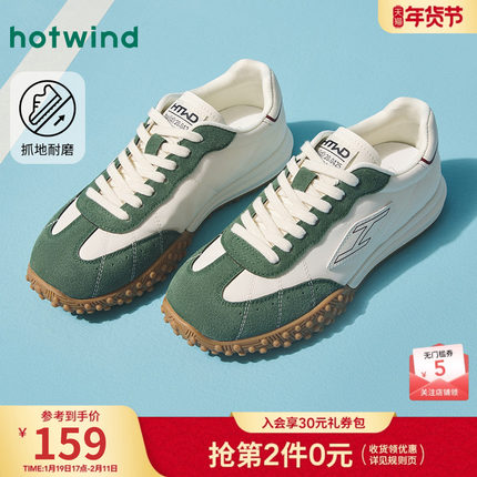 热风复古绿德训鞋女鞋2025年春季新款户外休闲鞋子运动百搭慢跑鞋