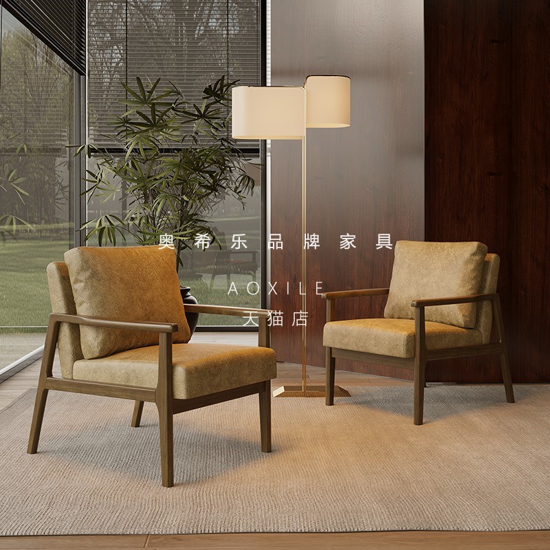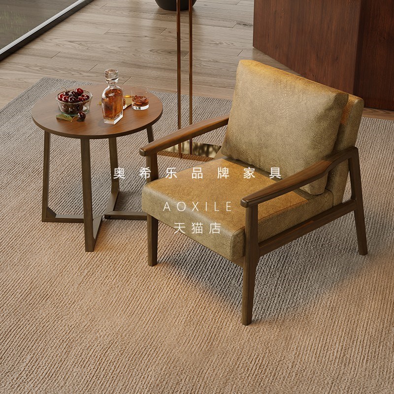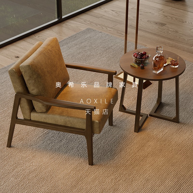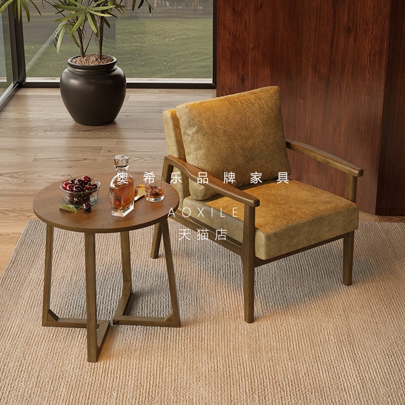 中古单椅懒人小沙发休闲椅子家用客厅洽谈桌椅组合咖啡店实木椅子