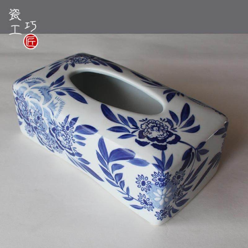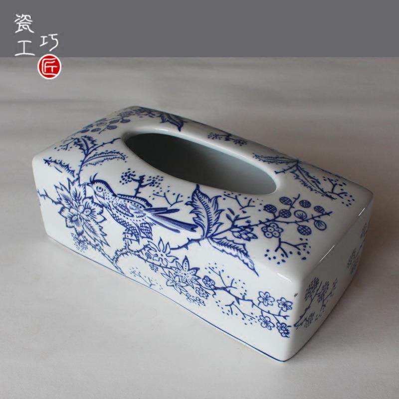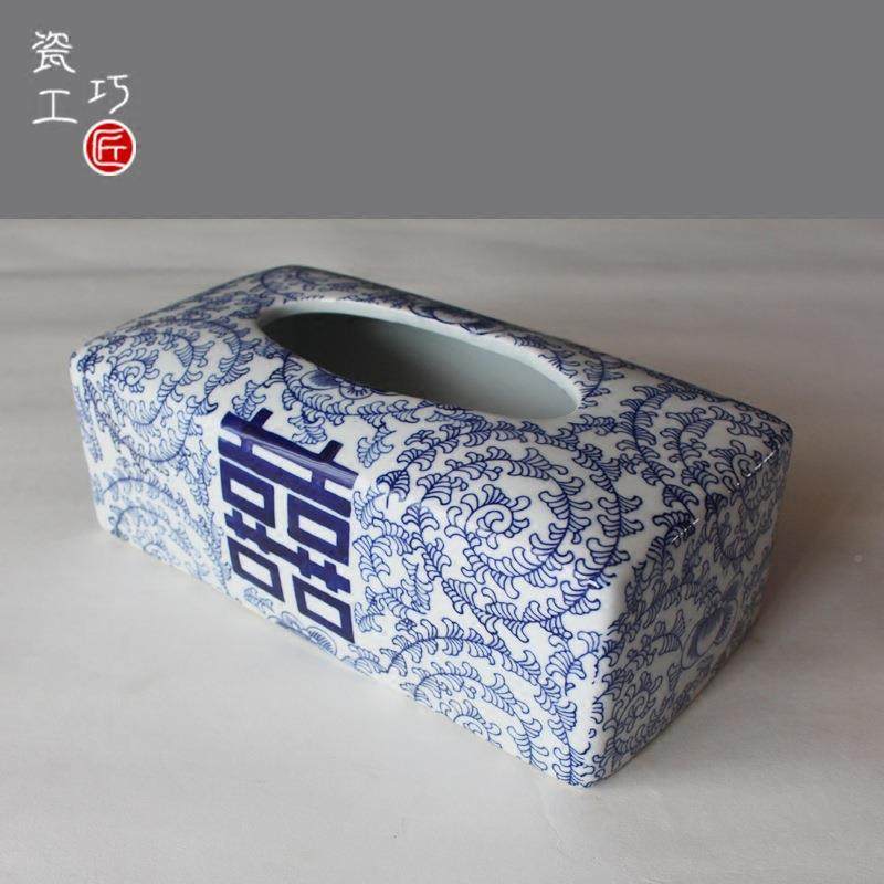青花瓷纸巾盒客厅茶新中式喜字青RCD桌面餐巾抽纸几盒用客花厅简