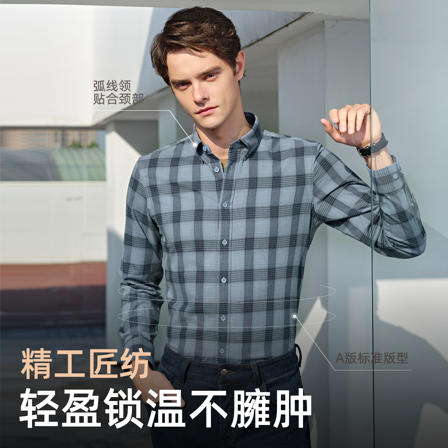 【牦牛绒】雅戈尔秋冬新品商务休闲保暖蓄热升温格子长袖衬衫男