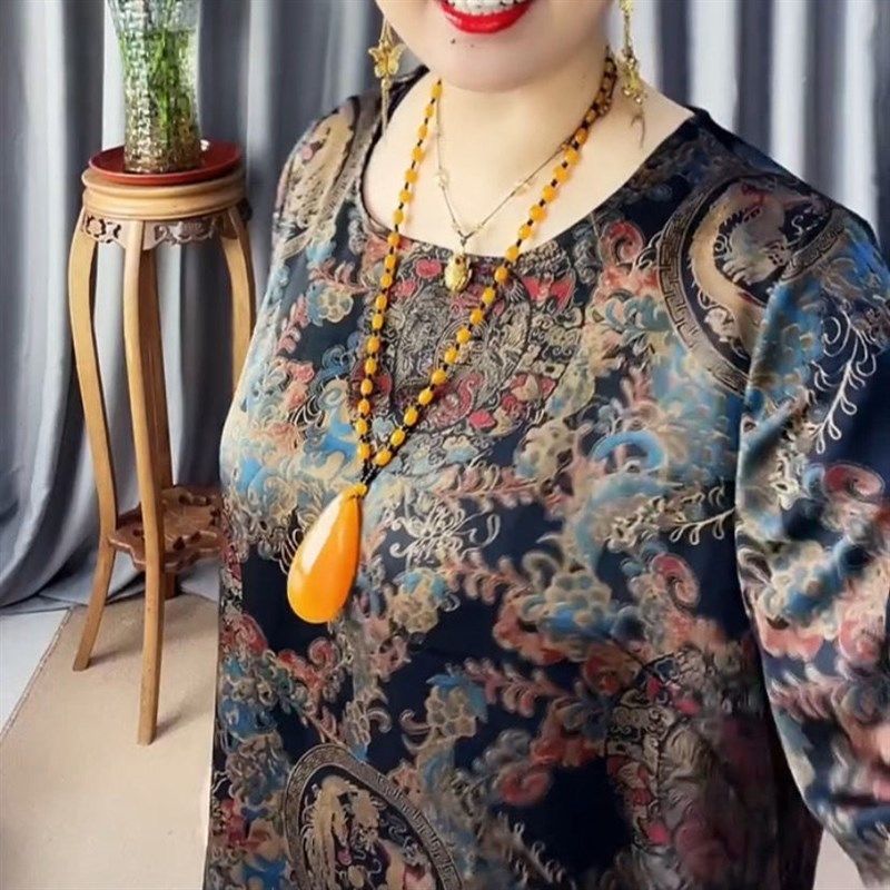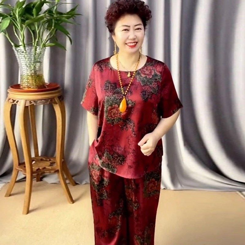 2025夏季新款中老年妈妈两件套高端时尚加肥加大龙凤呈祥真丝套装