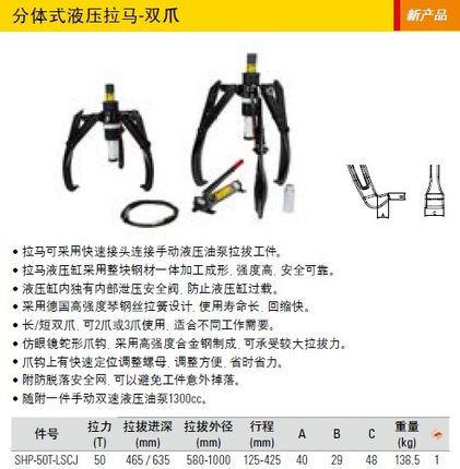 史丹利 分体式液压拉马SHP-50T-LSCJ长短双爪50吨带手动液压油泵