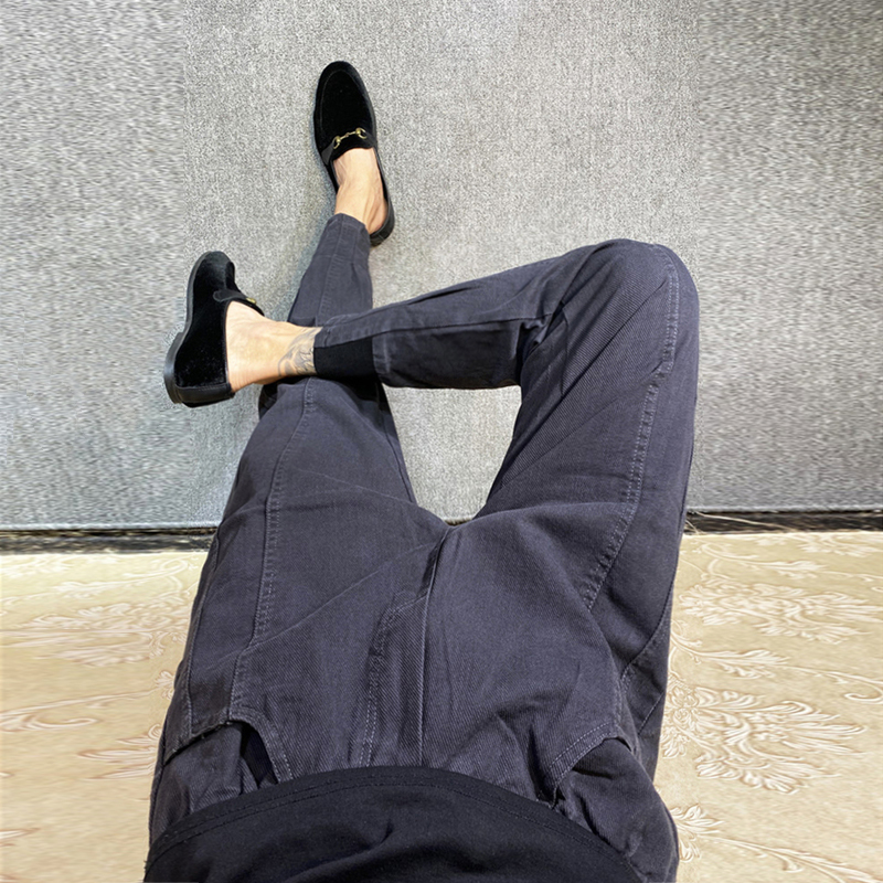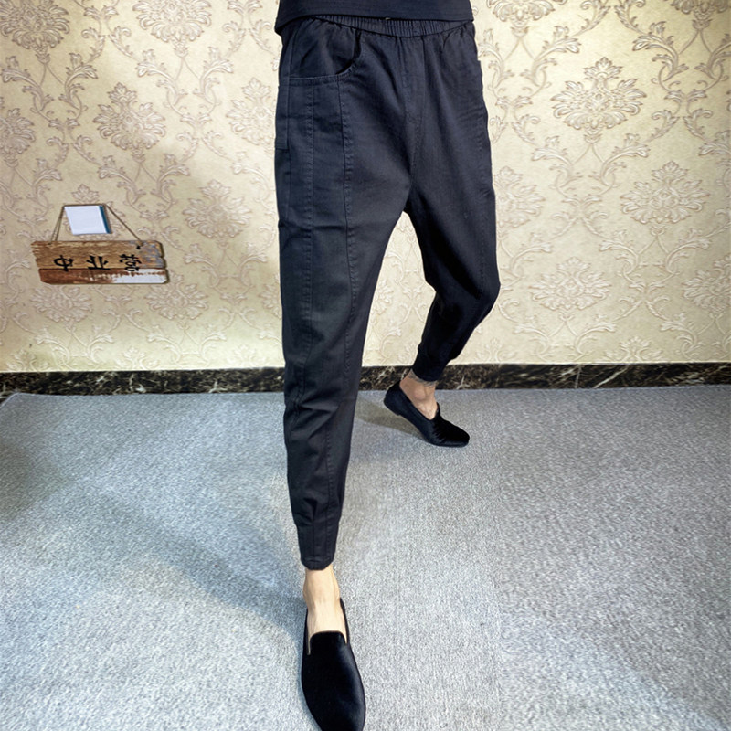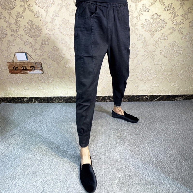 网红裤子男黑色牛仔裤痞帅韩版修身小脚哈伦裤男士显瘦休闲束脚裤
