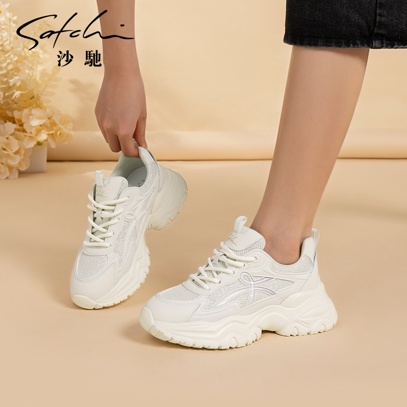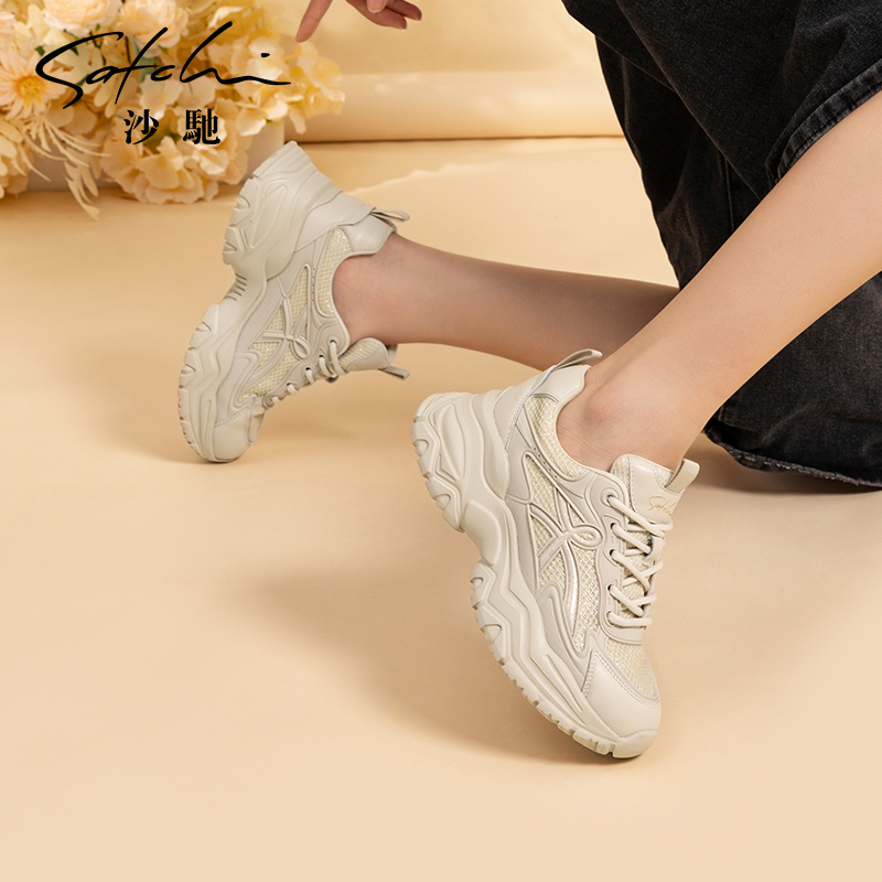 沙驰女鞋舒适厚底增高休闲鞋2025年秋冬新款透气轻便显脚小老爹鞋