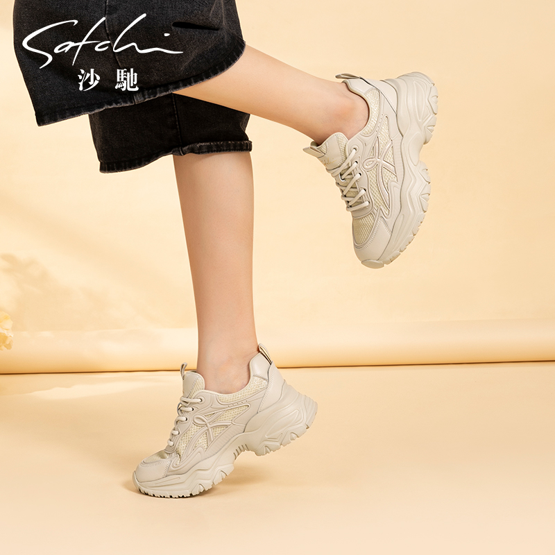 沙驰女鞋厚度增高老爹鞋女休闲鞋