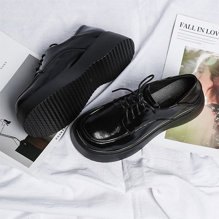 云上一步真皮系带复古英伦风小皮鞋厚底增高圆头松糕底单鞋大头鞋