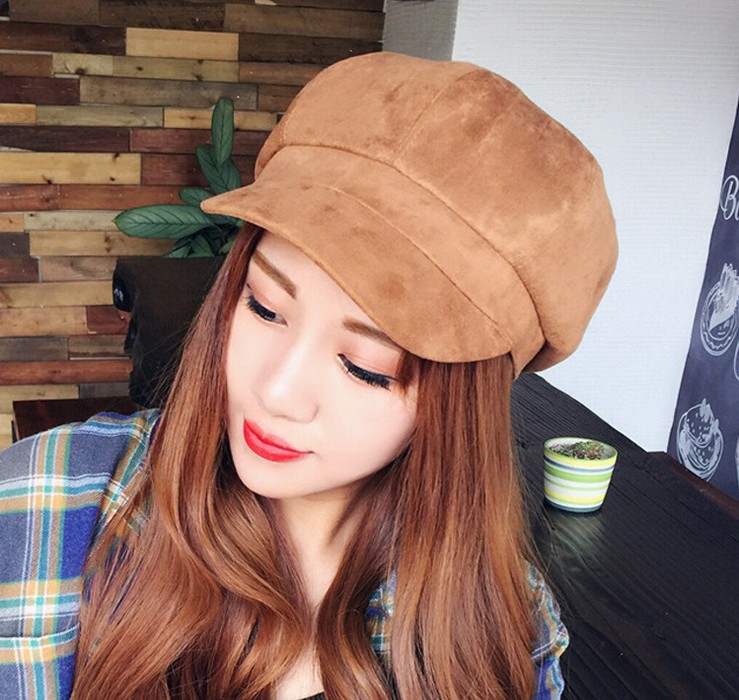 八角帽子女秋冬天韩国英伦贝雷帽麂皮绒鸭舌画家帽日系百搭报童帽