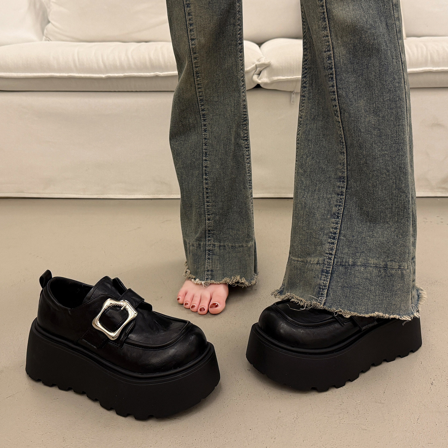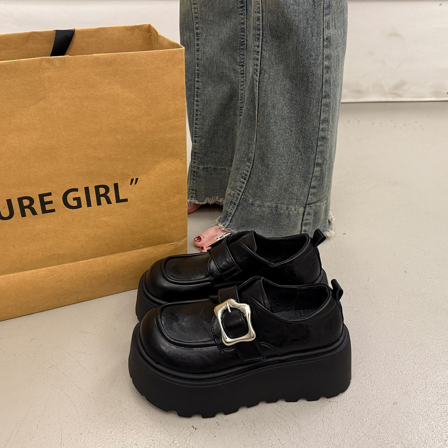 英伦厚底增高小皮鞋女秋冬百搭圆头深口单鞋2025新款玛丽珍松糕鞋