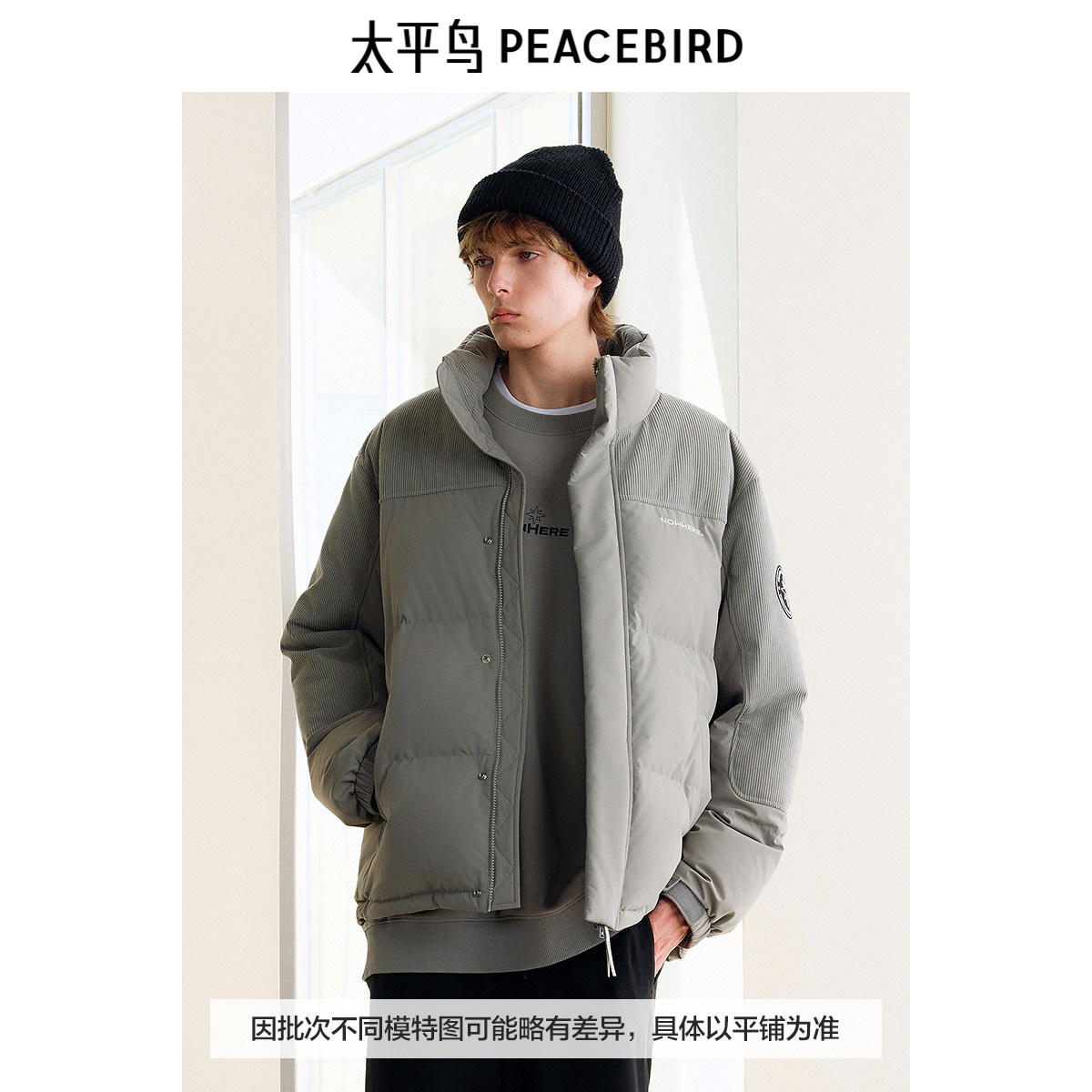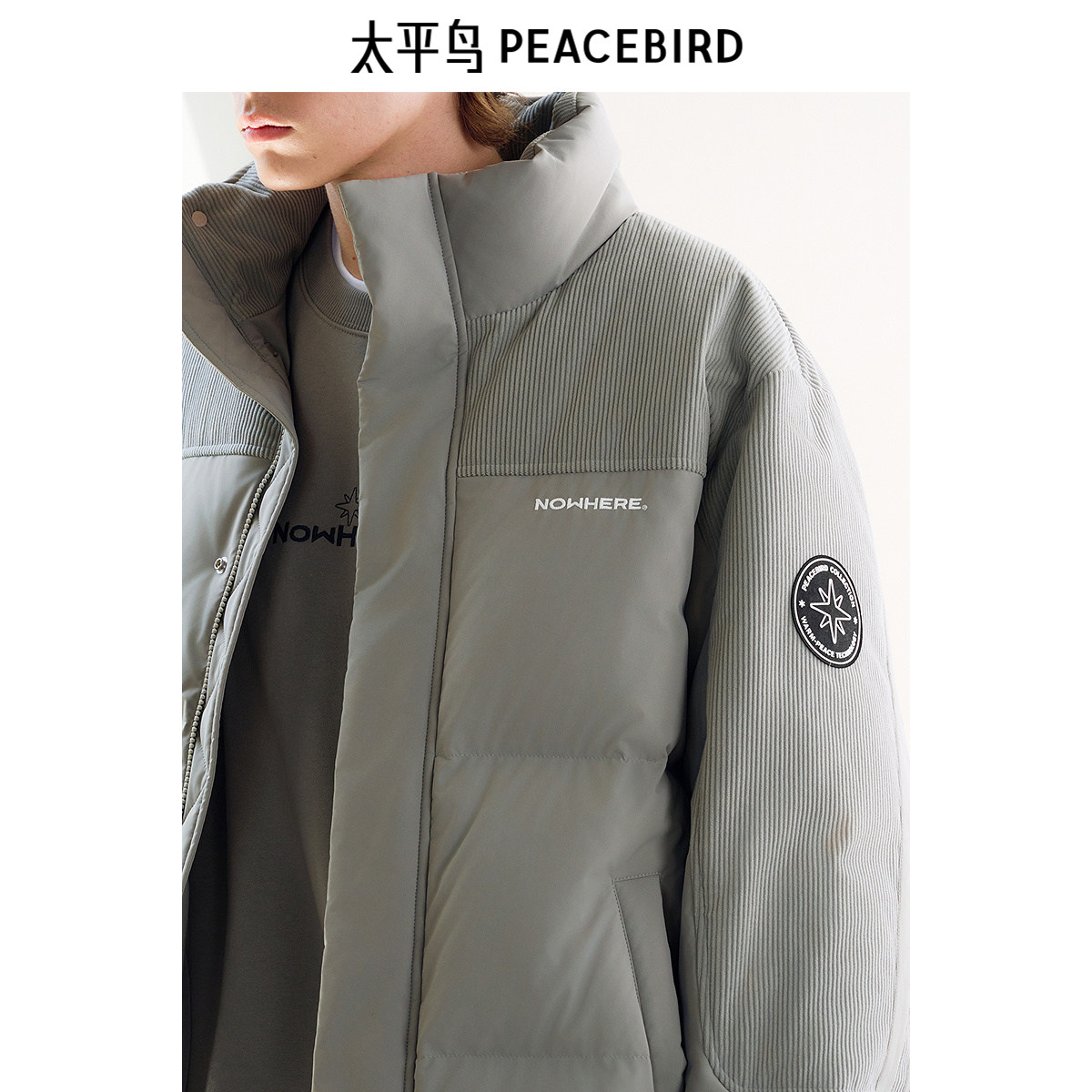 【商场同款】太平鸟男装 面包服男潮流灯芯绒拼接羽绒服B2ACE4418