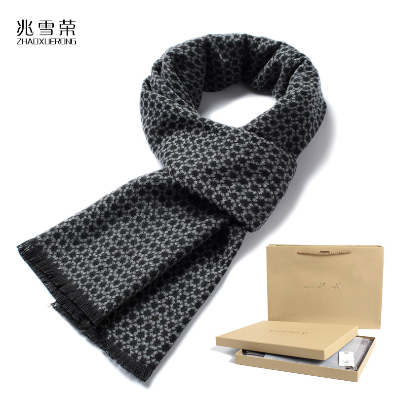兆雪荣男围巾秋冬季中年格子商务新款百搭简约男士披肩围脖冬天