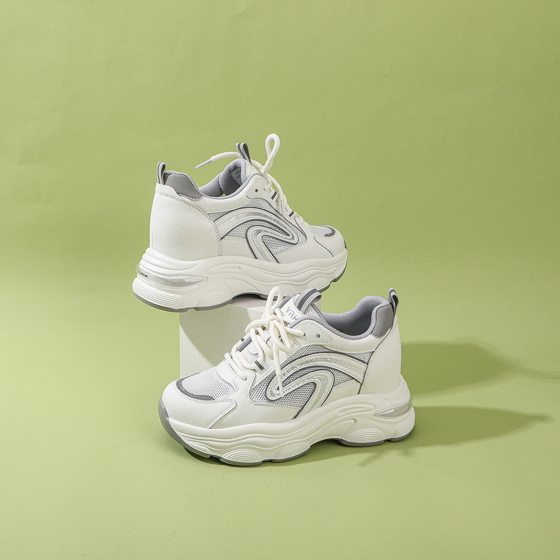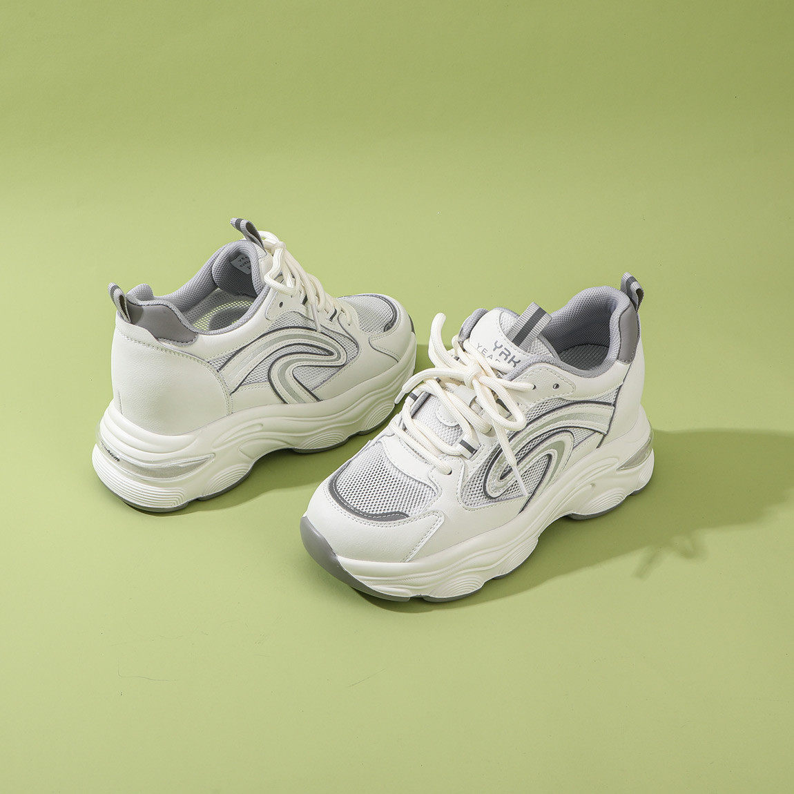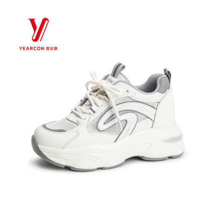 意尔康老爹鞋女款2024新款白色超火显瘦网面厚底舒适轻便02953