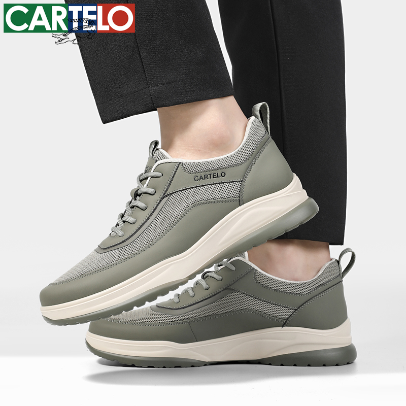 卡帝乐鳄鱼男鞋新款秋季运动皮鞋网面真皮透气软底休闲商务通勤鞋