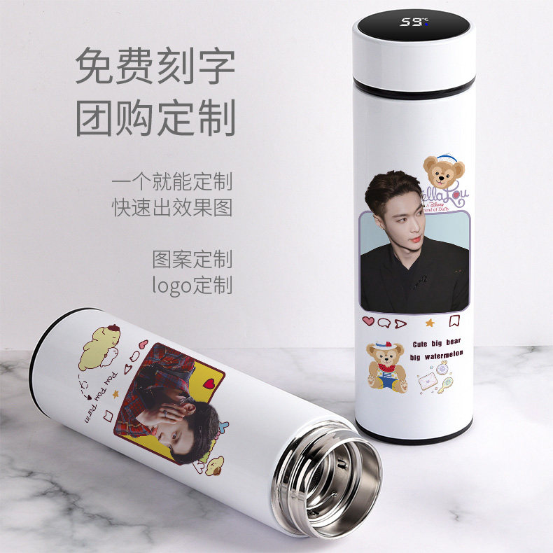 张艺兴EXO同款照片周边不锈钢智能保温杯创意定制简约学生水杯子
