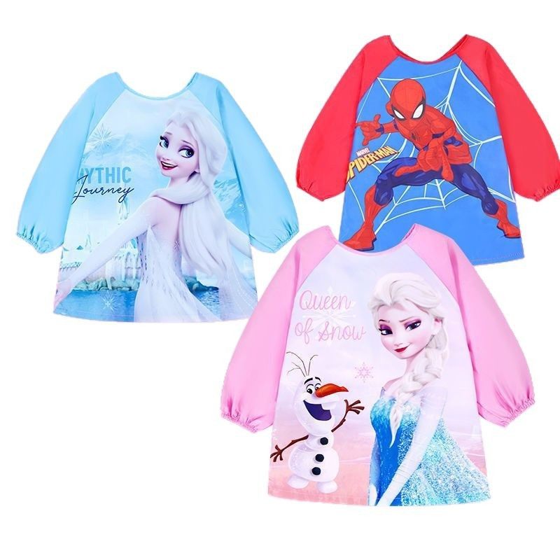 迪士尼儿童罩衣男女孩子防水长袖反穿衣宝宝罩衣幼儿园画画衣