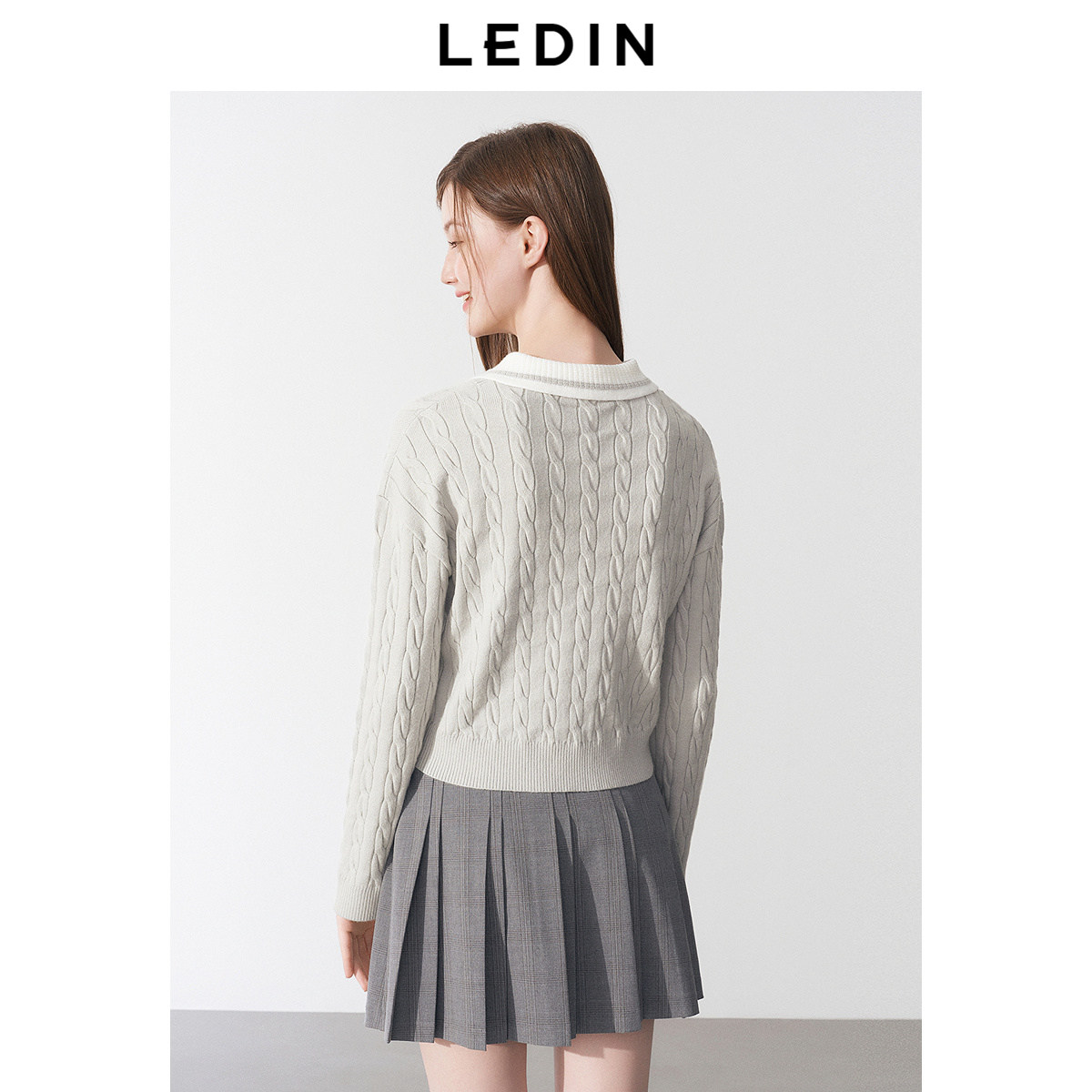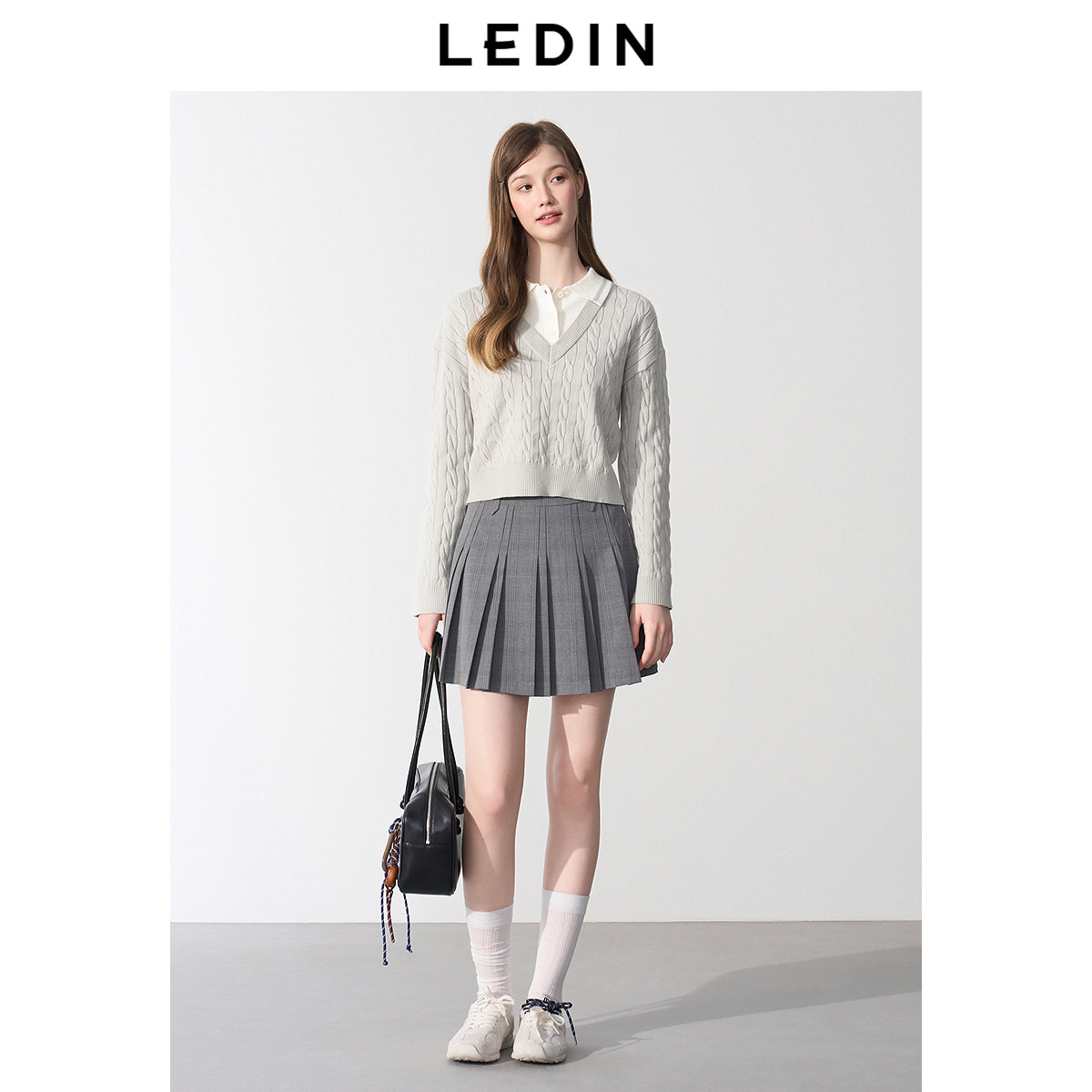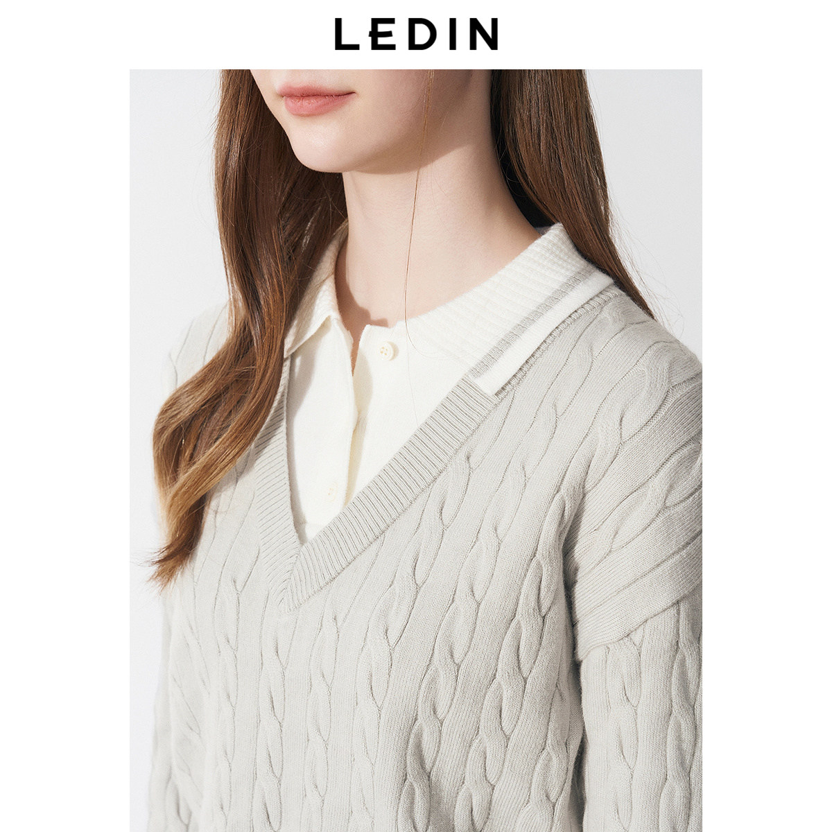 乐町撞色拼接假两件线套衫2025年春季新款宽松短款毛衣