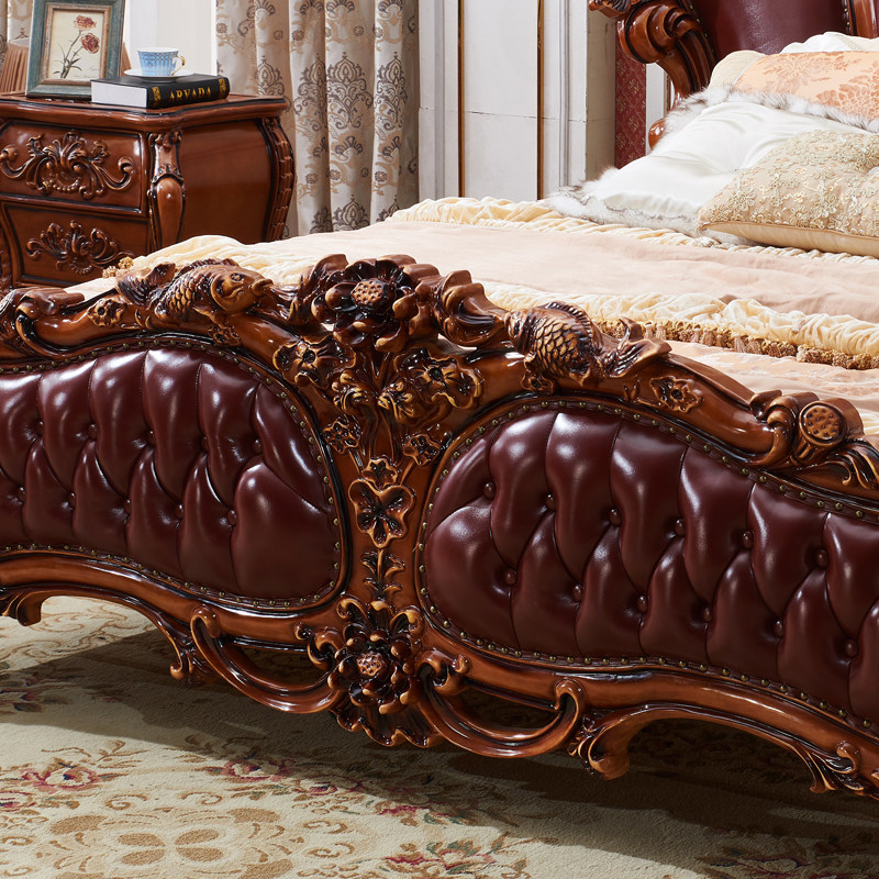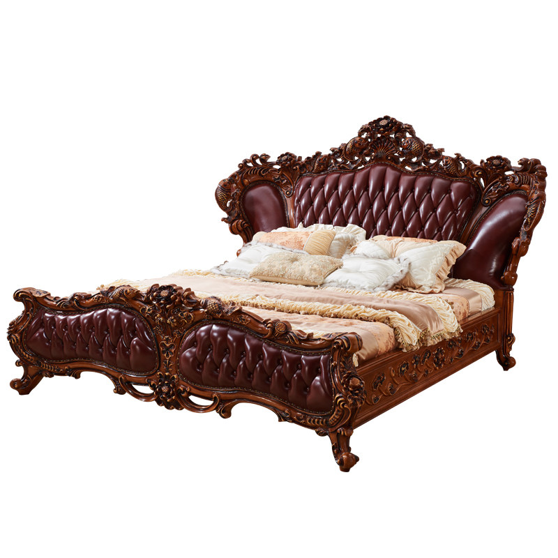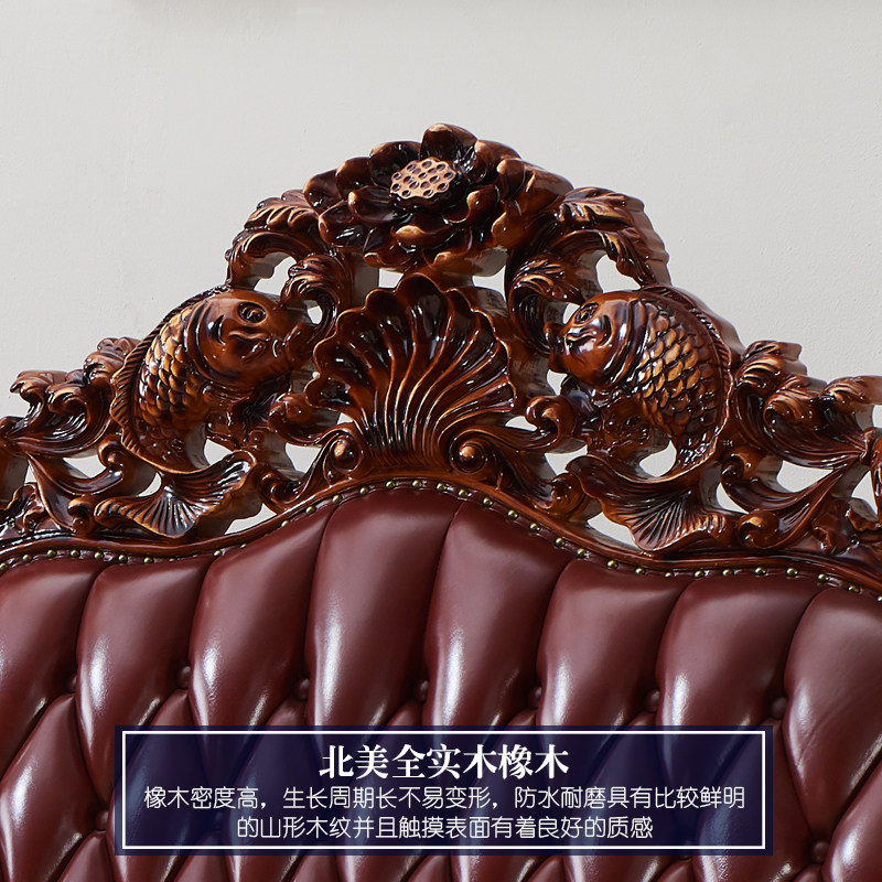 欧式真皮床全实木豪华雕花美式卧室1.8米2.0米大床双人公主床婚床