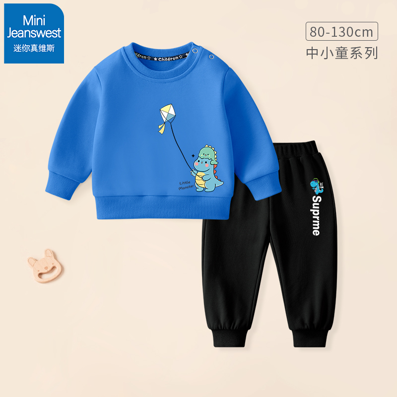 真维斯儿童卫衣套装春秋款男童2025新款长袖上衣宝宝恐龙衣服春装