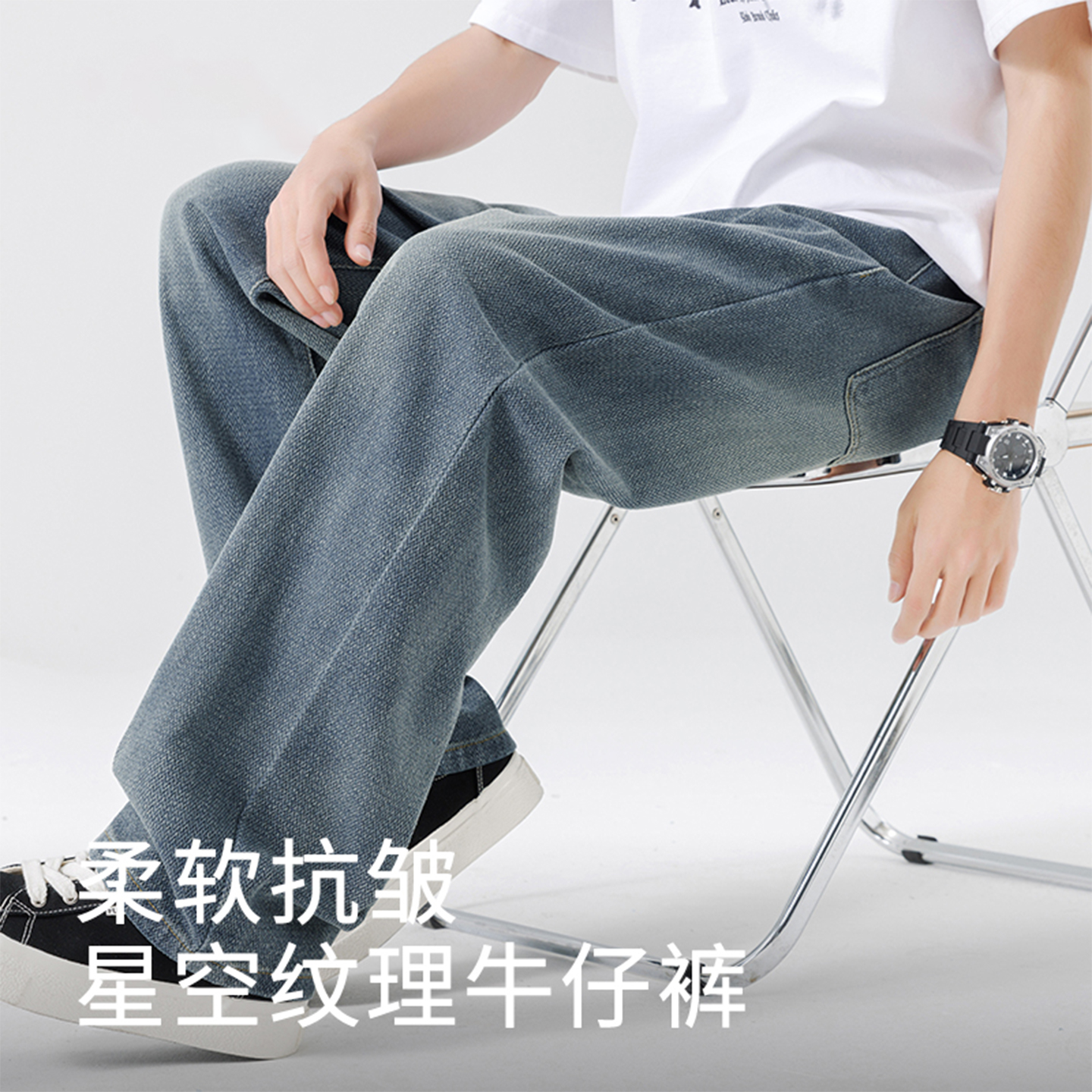 班尼路直筒牛仔裤男秋冬季星空纹裤子美式高街宽松百搭休闲长裤A