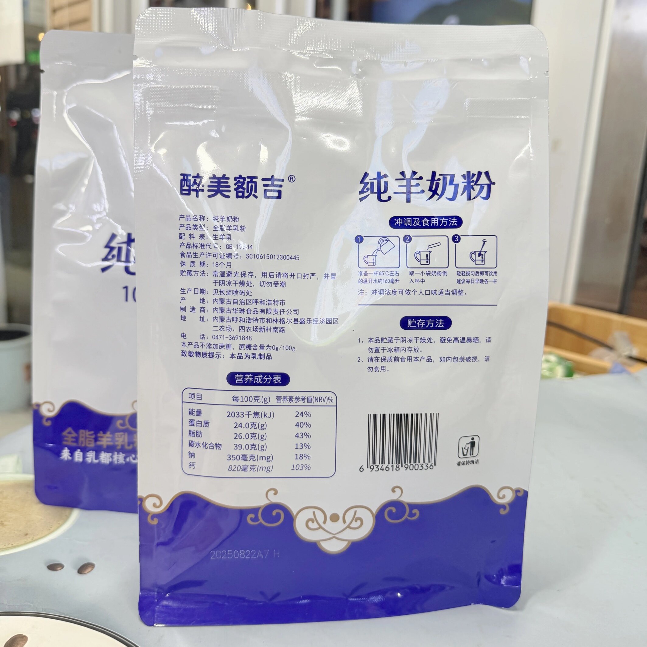 醉美额吉纯羊奶粉全脂羊奶粉100%生羊乳无蔗糖独立包装