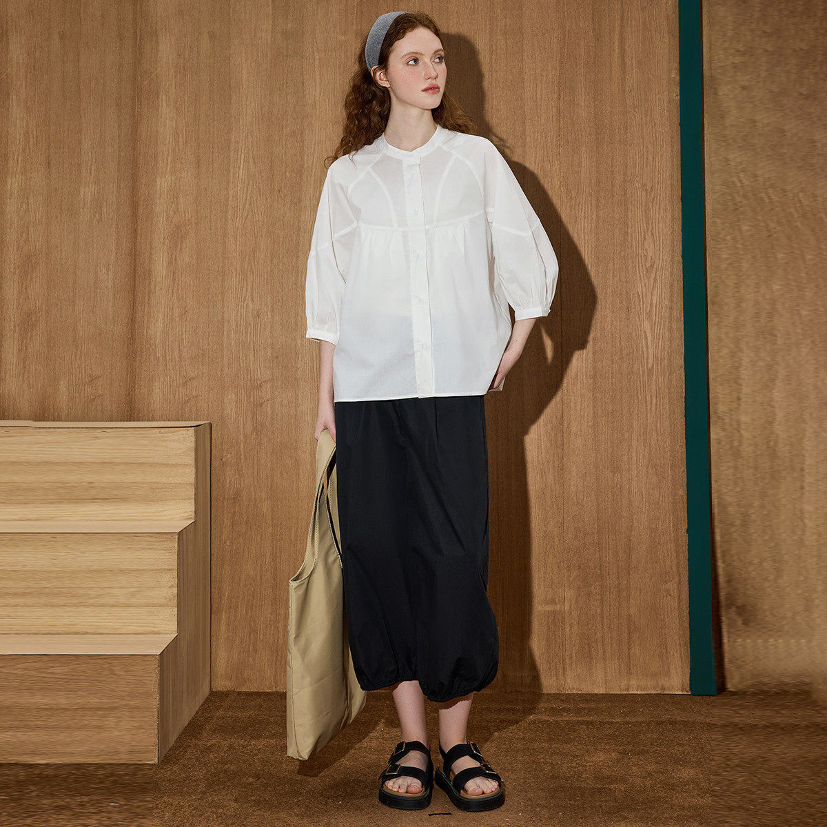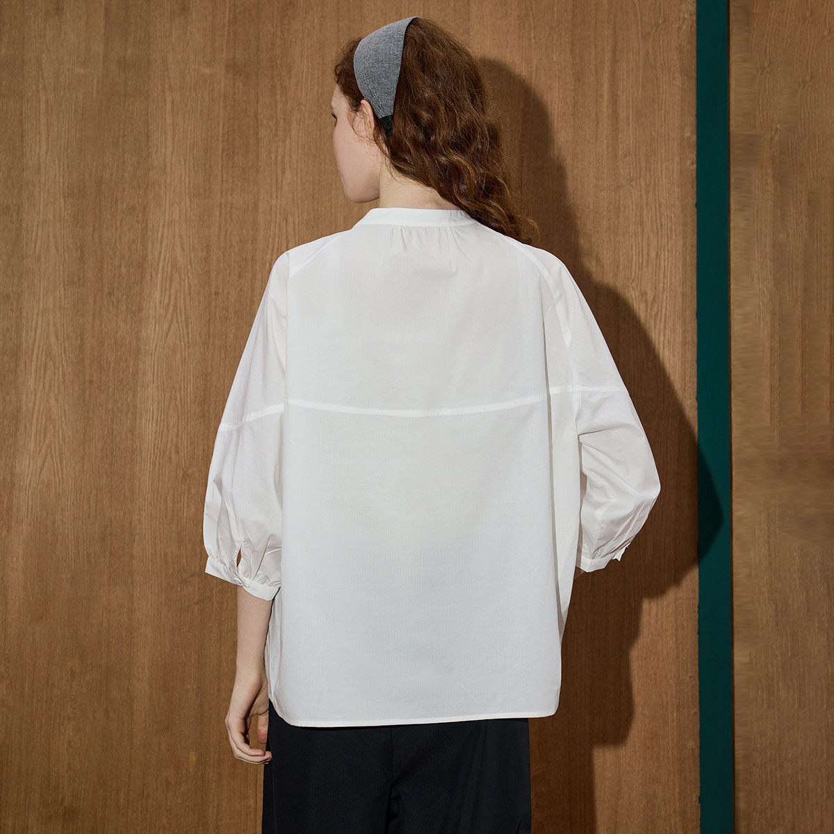 coolhut2025夏季新款法式圆领白色衬衫女宽松休闲长袖上衣