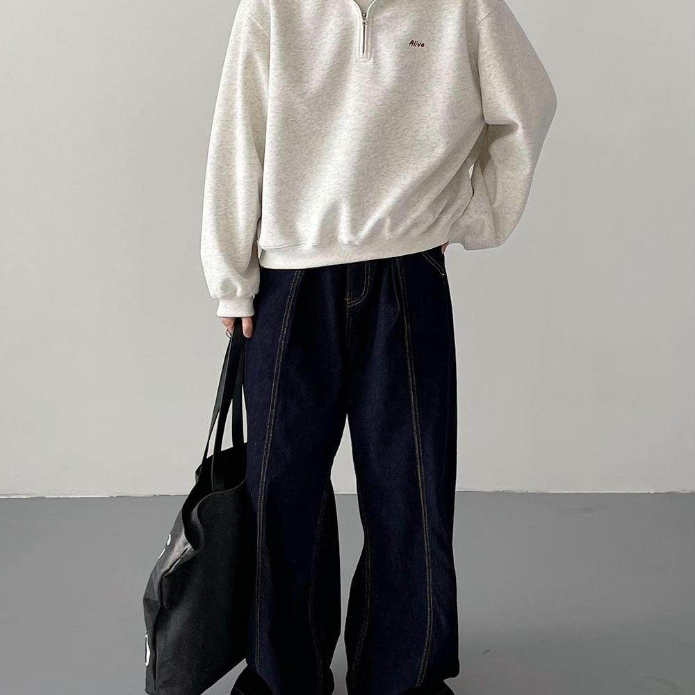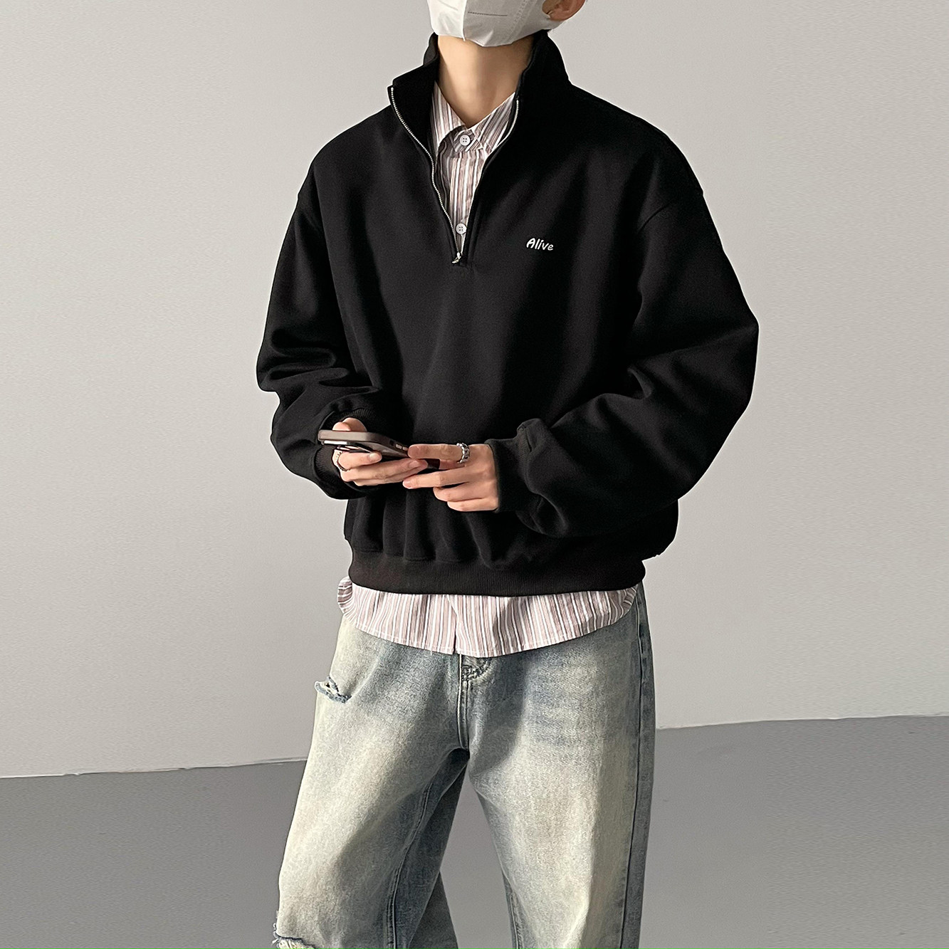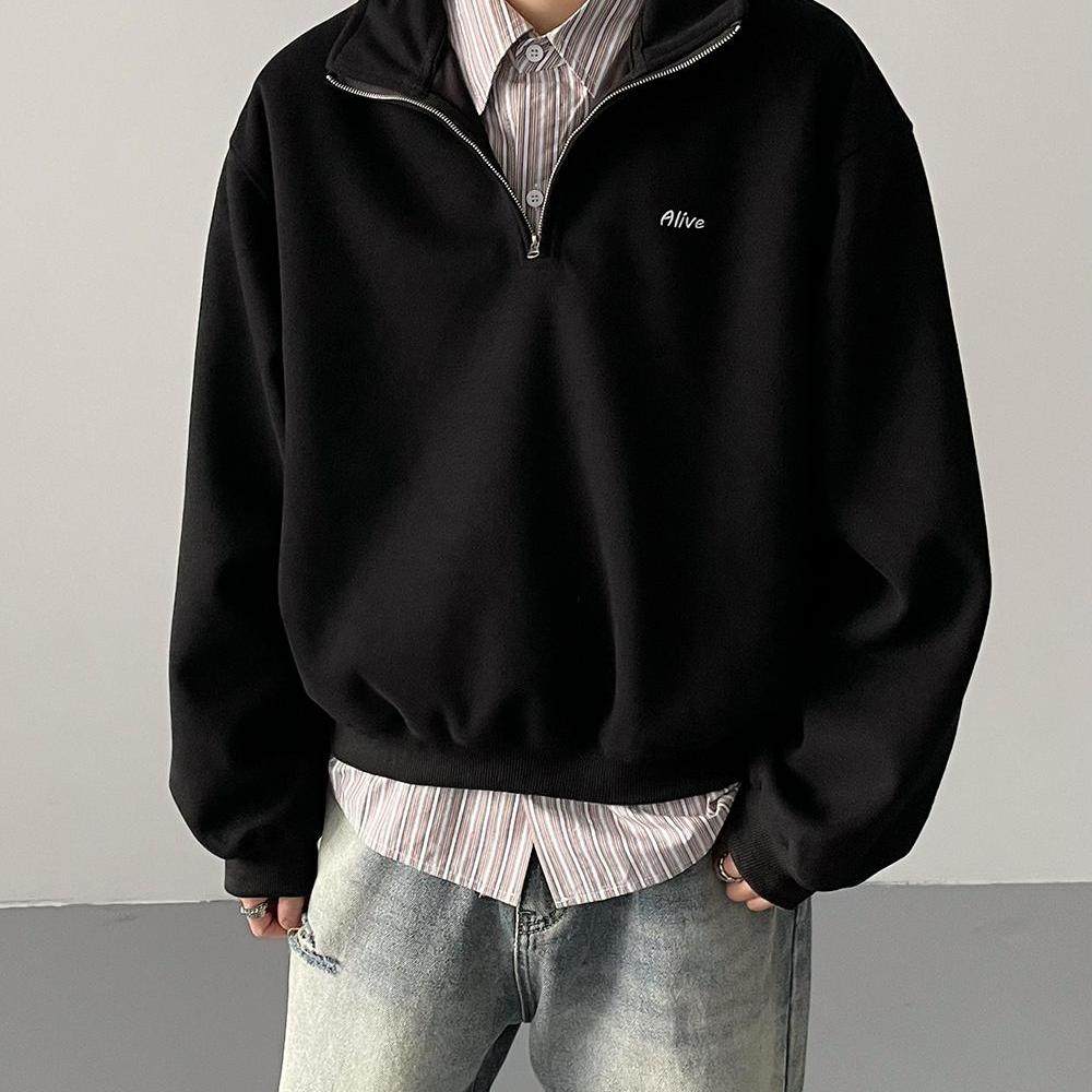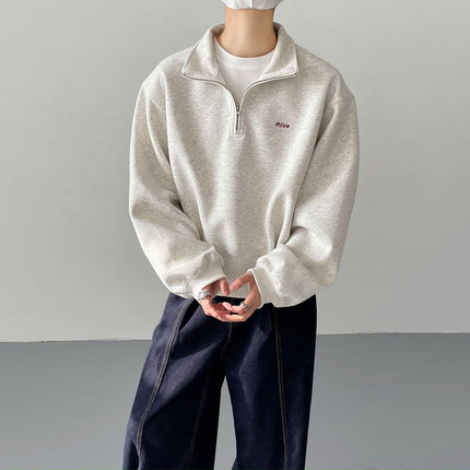 春秋韩版时髦复古cleanfit超短款半领宽松卫衣男士休闲运动衫外套