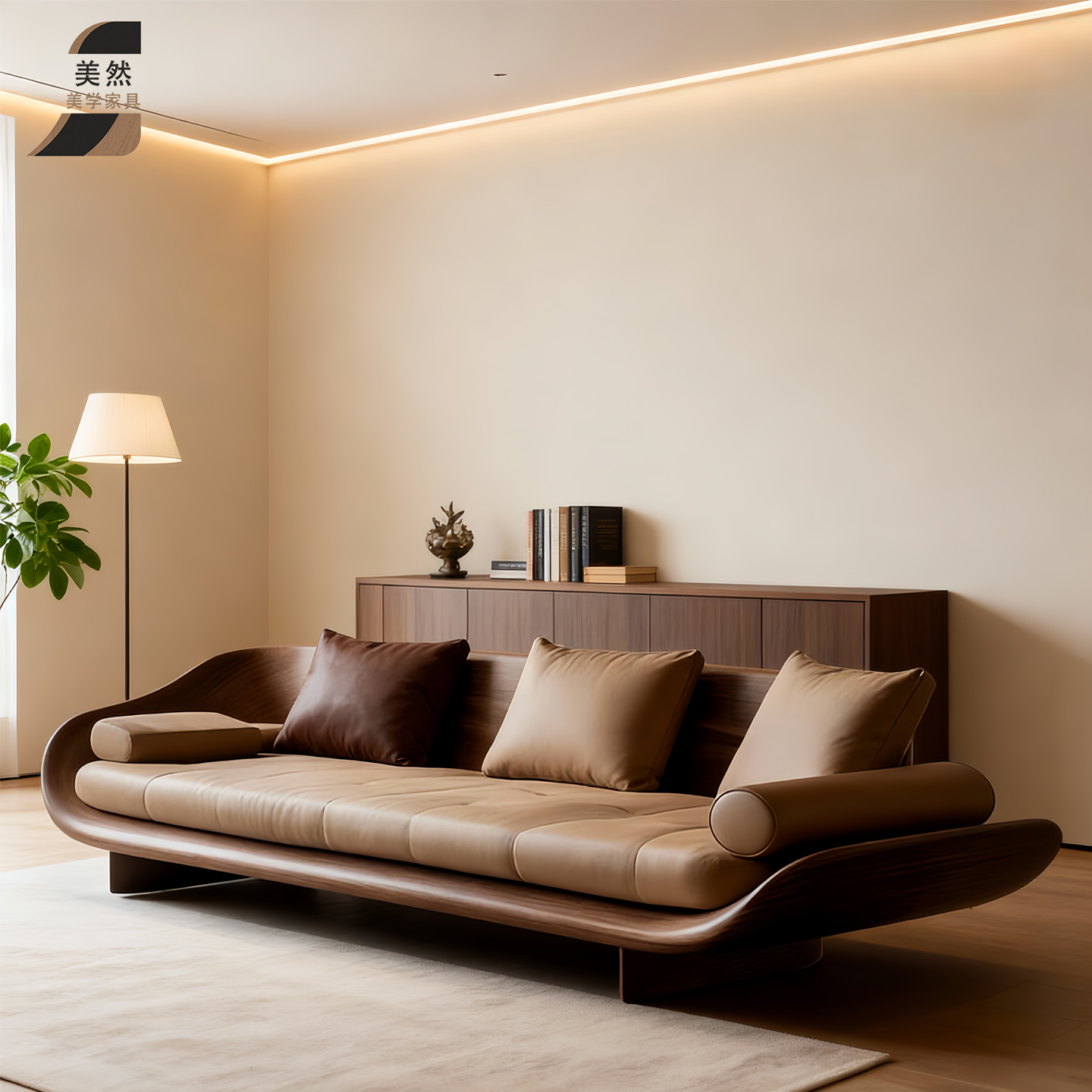 意式极简北美黑胡桃木实木沙发