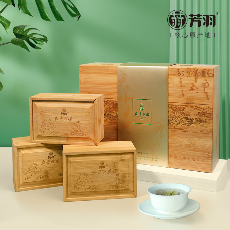 2025年新茶上市芳羽安吉白茶明前精品茶叶竹雕礼盒装250g特级绿茶