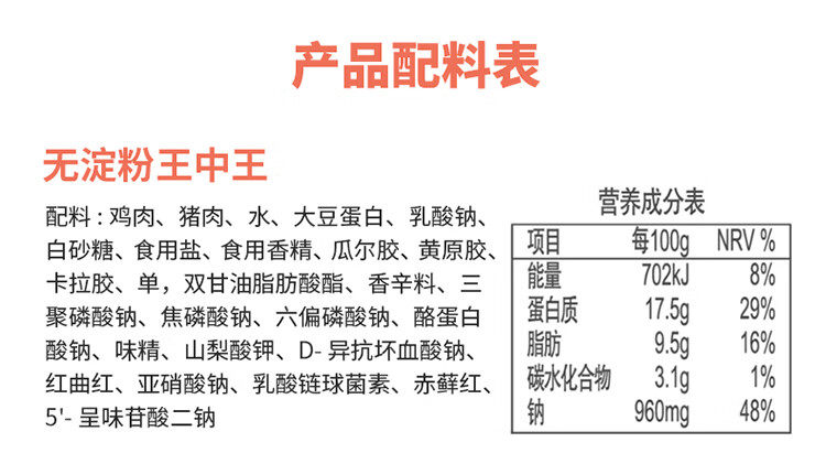 金锣 王中王无淀粉火腿肠 香肠烤肠肉类零食