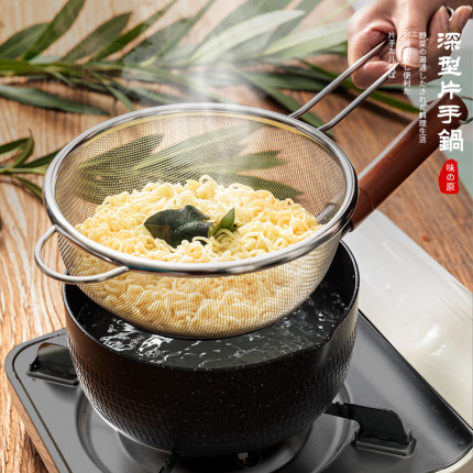 日式单柄雪平锅不锈钢滤网网篮煮泡面锅汤锅奶锅油炸锅家用不粘锅