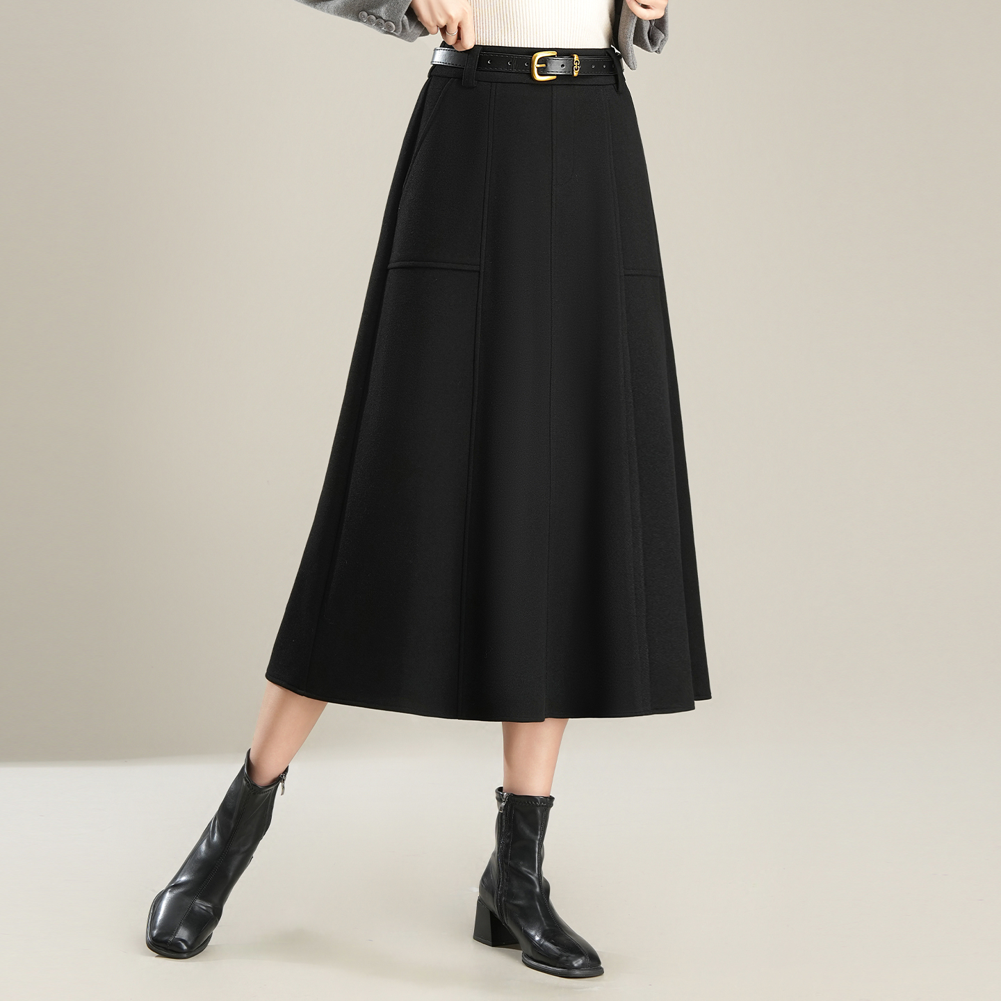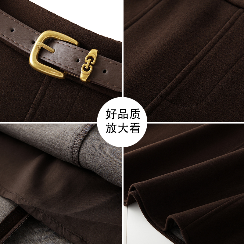 咖色毛呢半身裙女秋冬新款2025超好看气质加厚中长款百褶a字伞裙