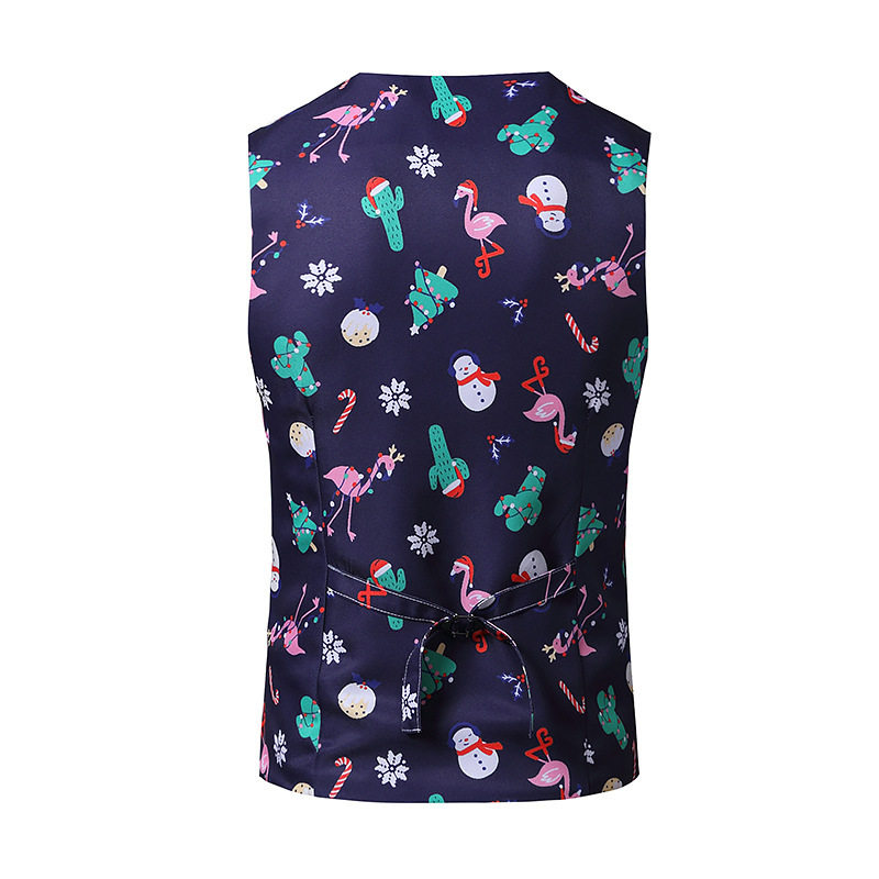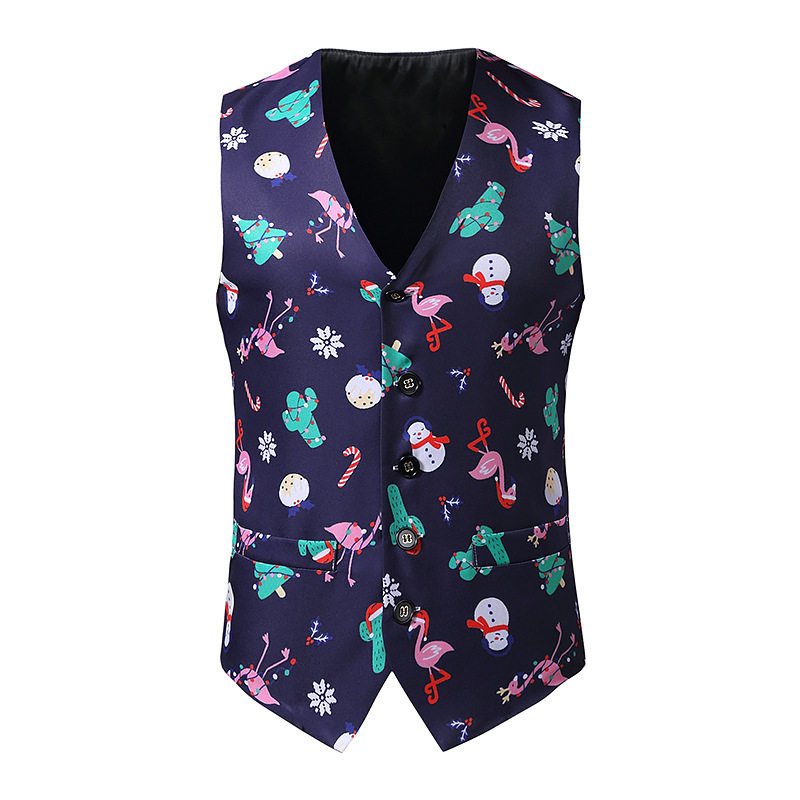 欧美圣诞款印花西装马甲男秋冬休闲青年修身碎花马夹发型师外套潮