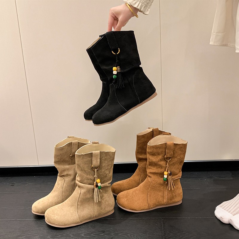 民族风复古短筒靴女2025年秋新款配裙子旅游度假西部靴子勃肯短靴