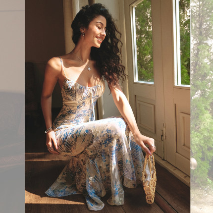 ITSNIKAR【清酒裙】蓝色碎花连衣裙女性感吊带长裙海边度假鱼尾裙