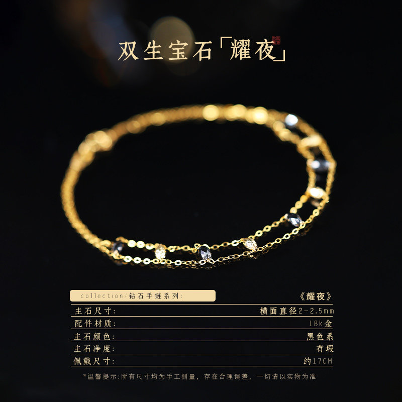 可卿珠宝 耀夜 钻石手链18k金米形黑钻双层彩宝礼物饰品女正品