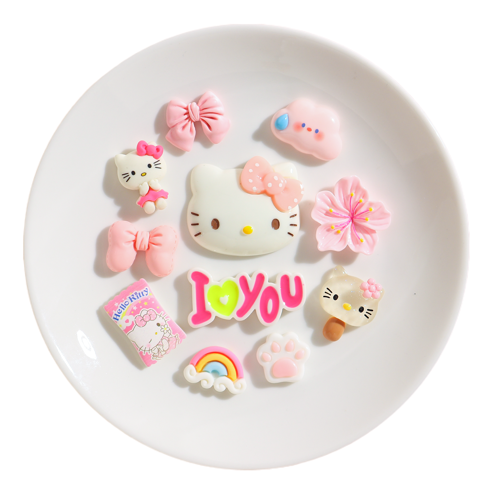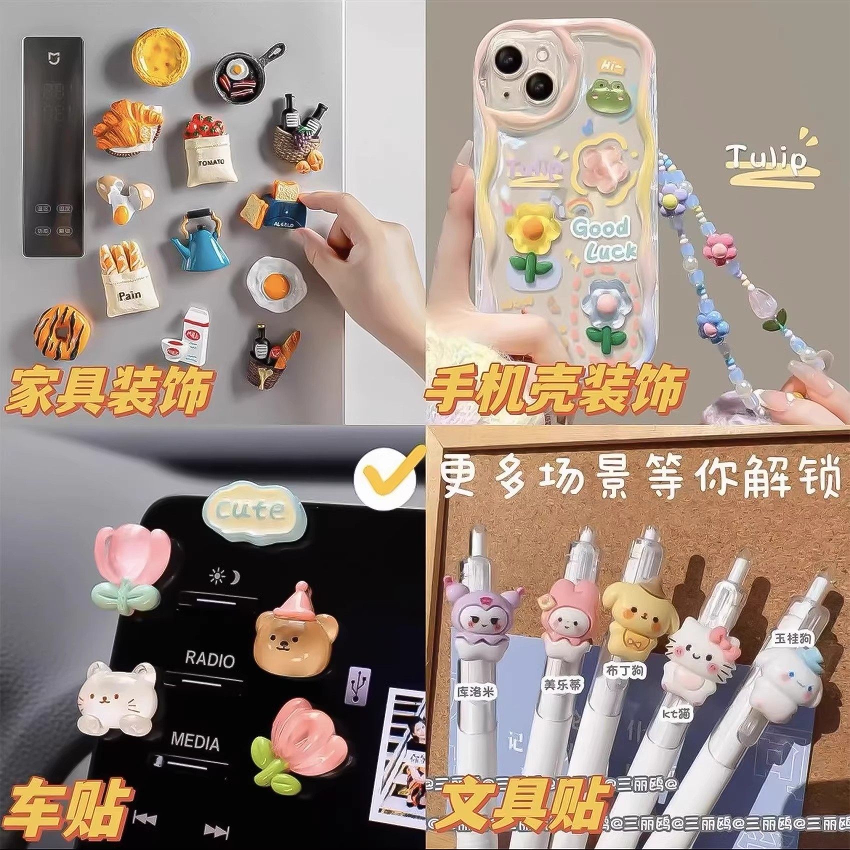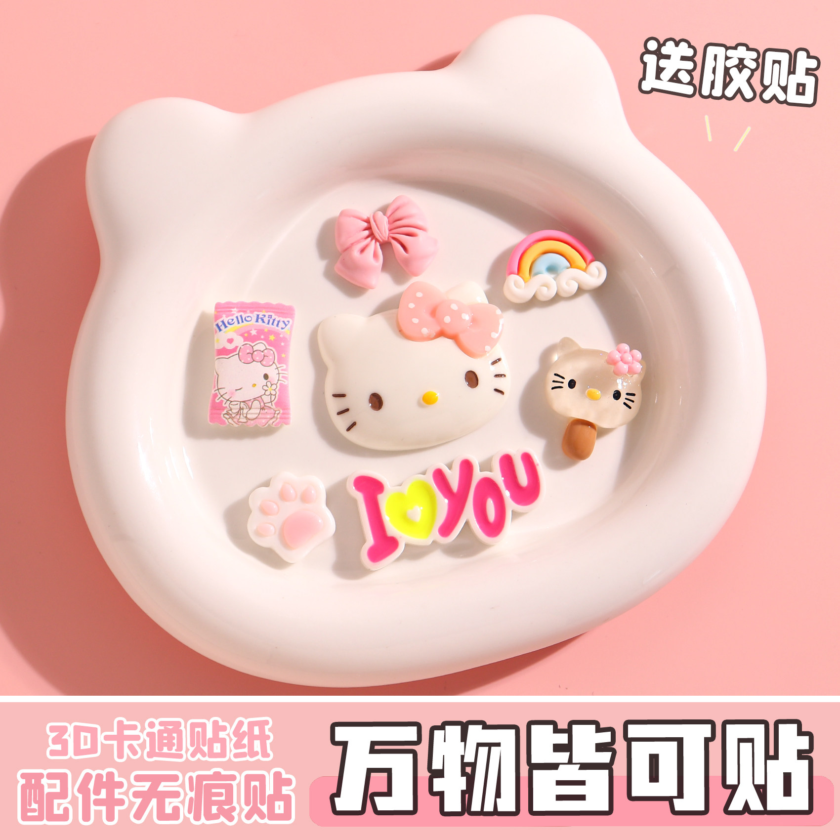 可爱猫咪树脂配件无痕贴 diy花朵彩虹水杯装饰贴冰箱贴自粘小饰品