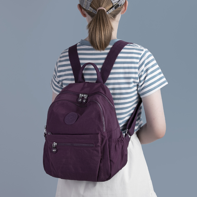 小号新款双肩包女式尼龙布休闲旅游逛街包包纯色拉链夹层可防泼水