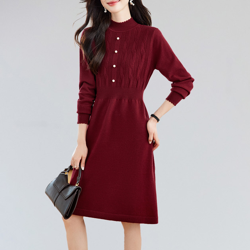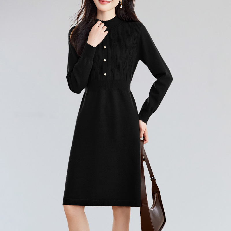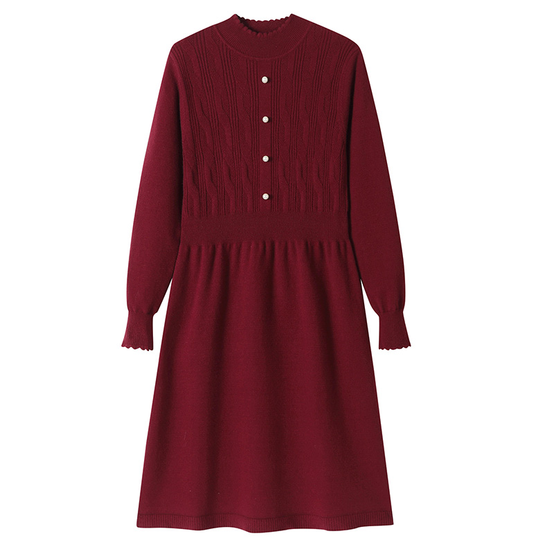 羊毛针织连衣裙女秋冬中长毛衣裙