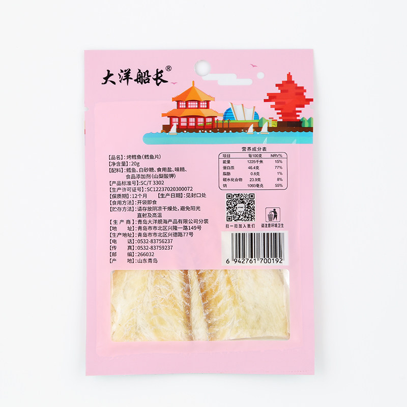 大洋烤鳕鱼片20gX7袋 海鲜零食海产品青岛特产即食整片鳕鱼干鱼片